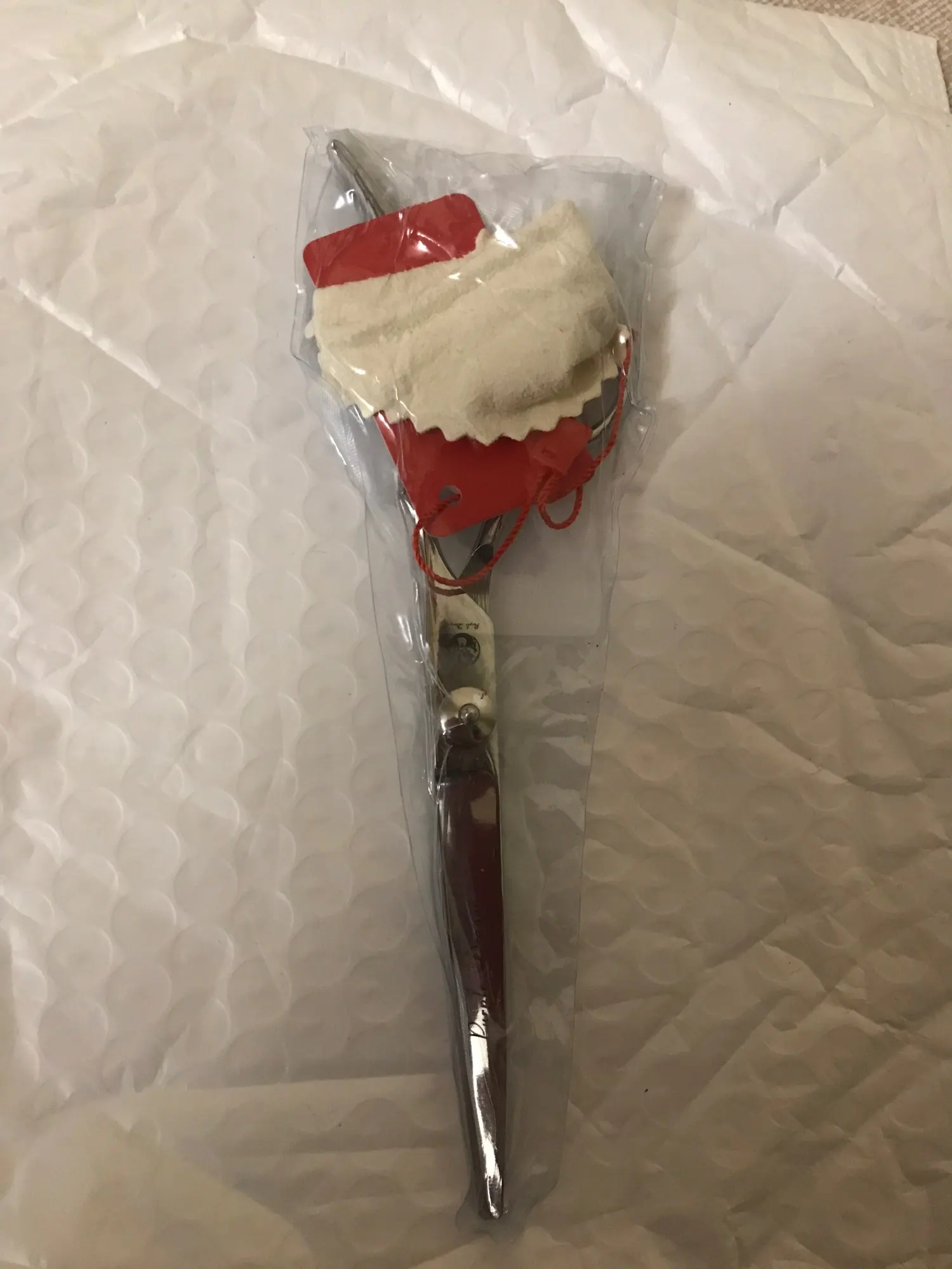 Посылку получили; в пути была 16 дней ; упаковка отлично . Изготовление - шикарно , блестят и заточены очень хорошо. Мягкий приятный ход ( регулируется ) из толстой стали половинки и отполированы четко ) Небольшой чехольчик для хранения и салфеточка... Спасибо, мне понравилось!