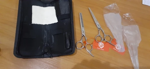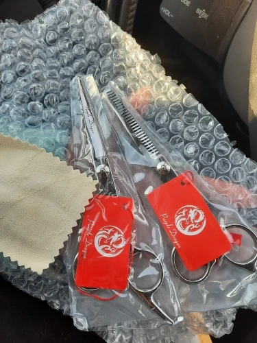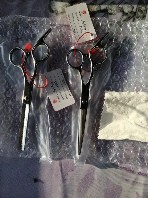 Ножницы пришли быстро, хорошо упакованные, довольно острые. Но для профессионального использования не дотягивают, концы слишком толстые. А для домашнего использования очень даже подойдут, особенно для мужских стрижек. С продавцом не общалась.