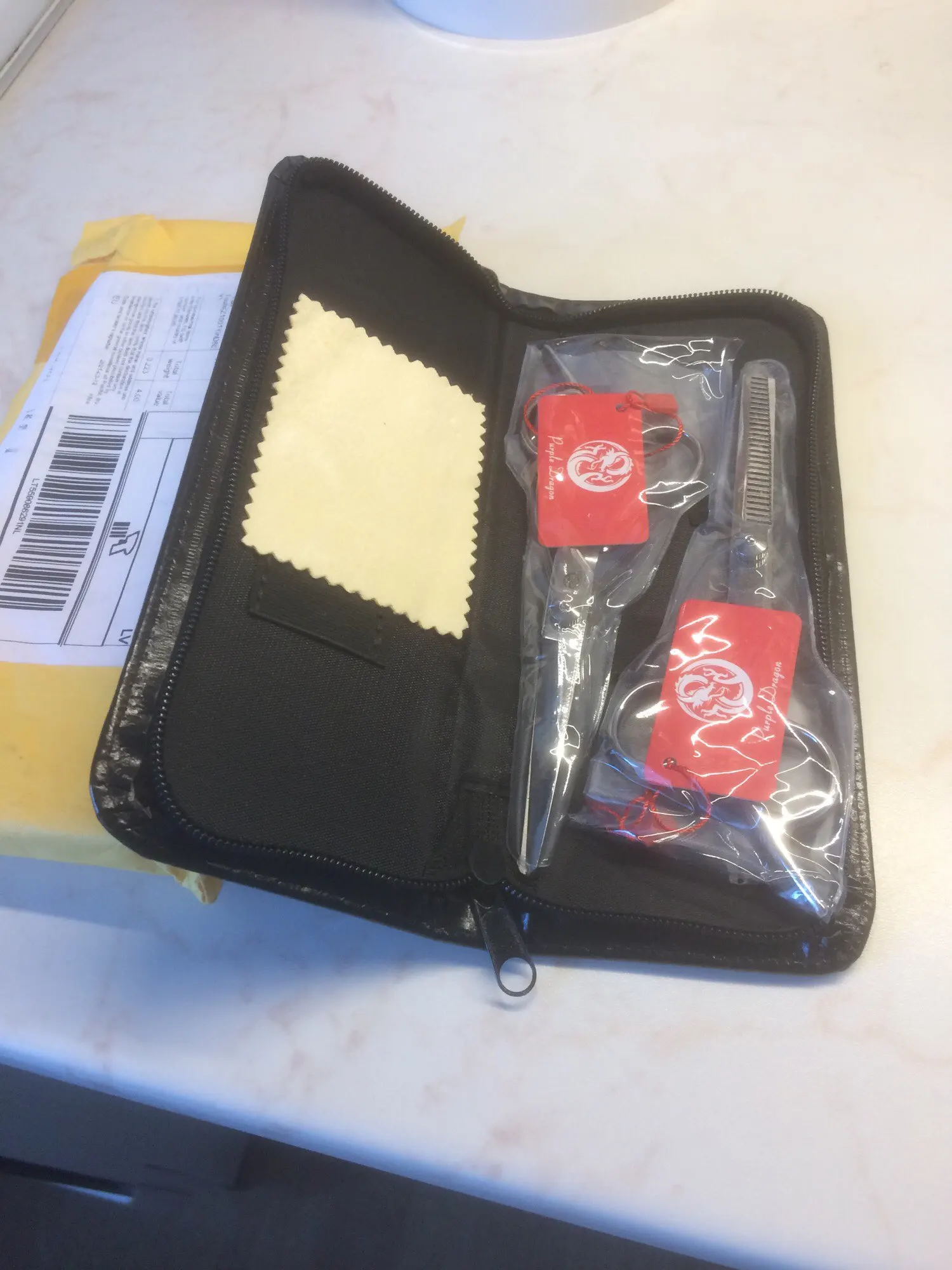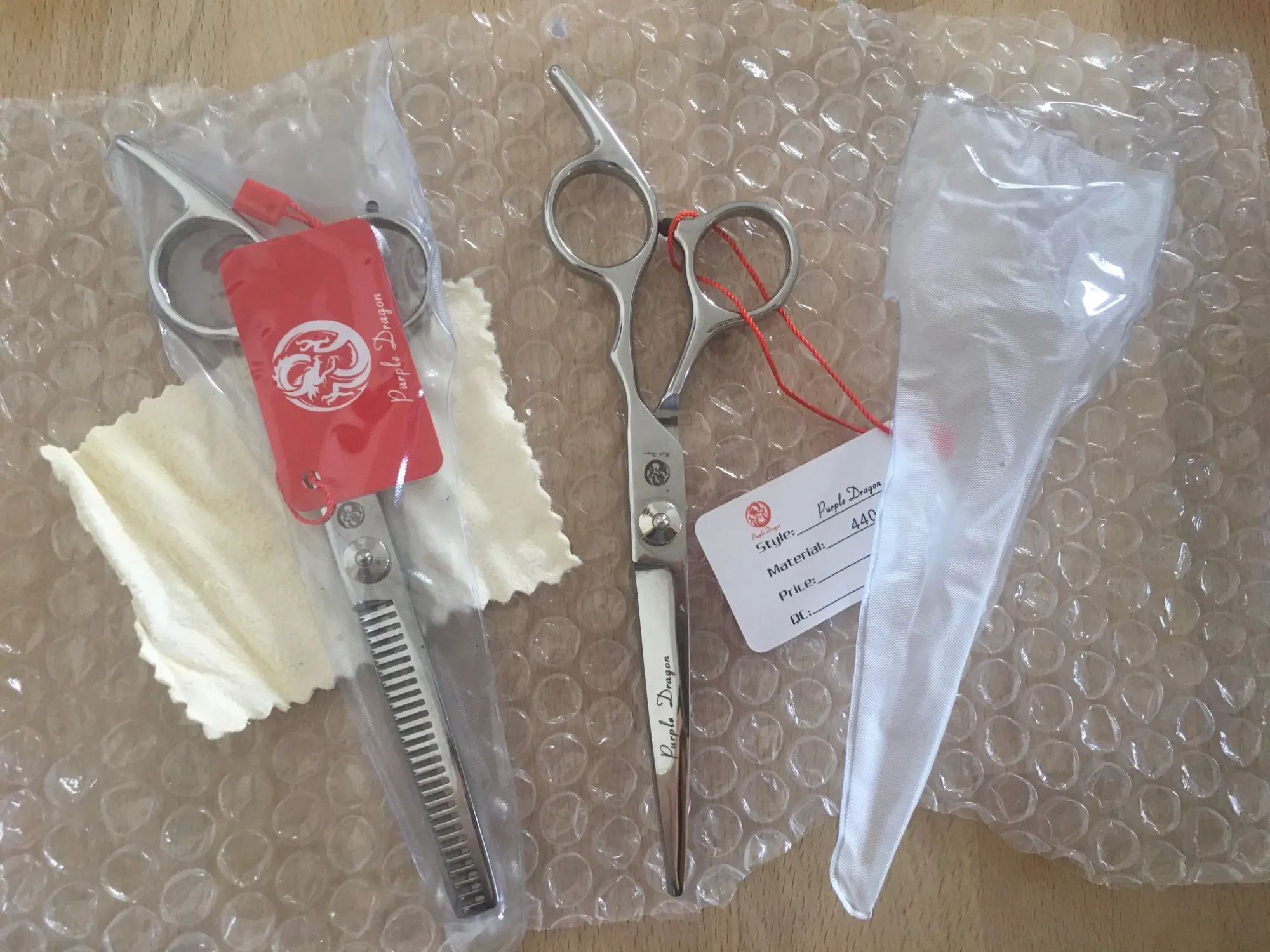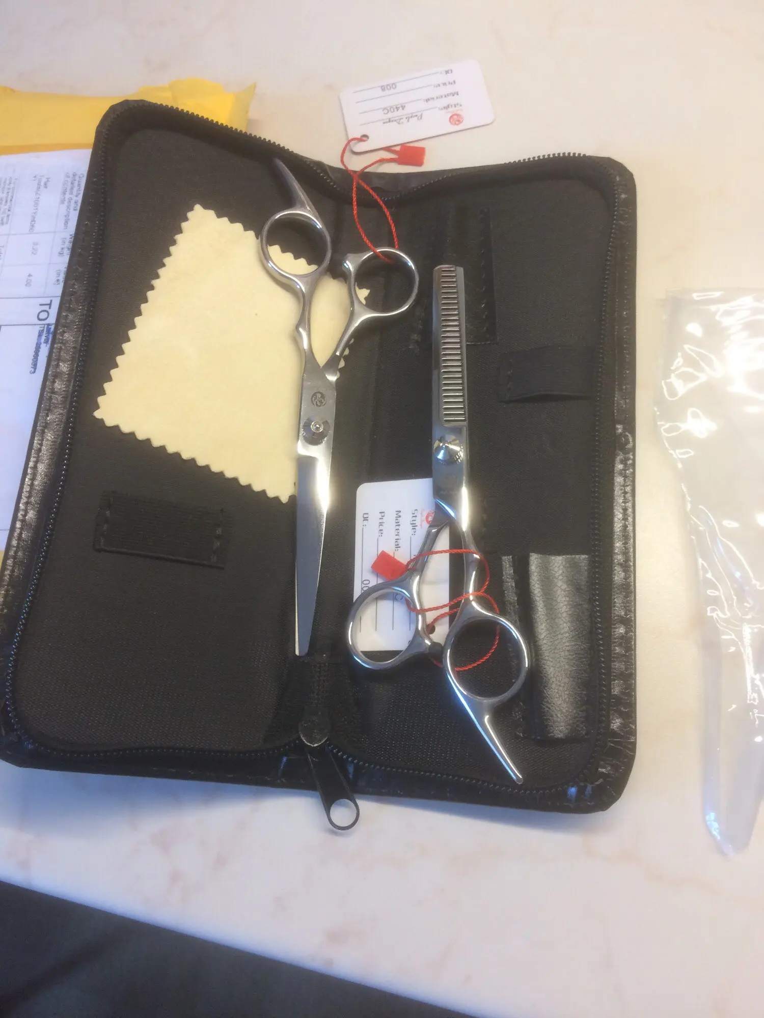 Заказала 8 марта, посылка пришла 8 апреля. Цена 459 рублей. Внешне качественные. Я не профессионал, купила дочки волосы стричь 2-3 раза в год. Попробовала, подстригли. В принципе удовлетворена. Только не поняла, для чего замшевую тряпочку положили.