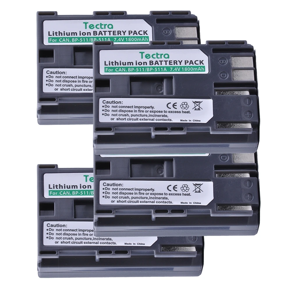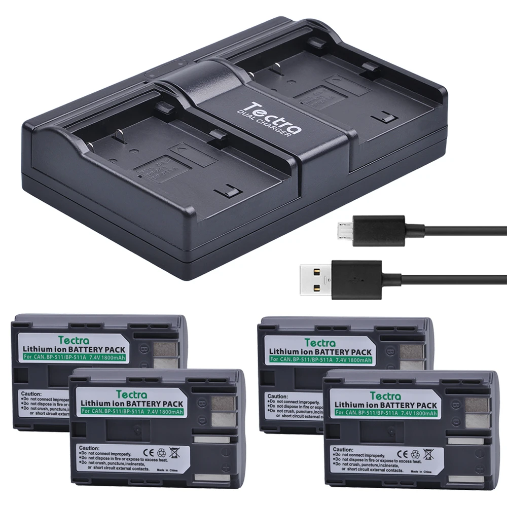 Tectra 4PCS BP-511 литий-ионный аккумулятор + USB 2-канальное зарядное устройство для Canon G6 G5 G3 G2 G1 EOS 300D 50D 40D 30D 20D 5D MV300i