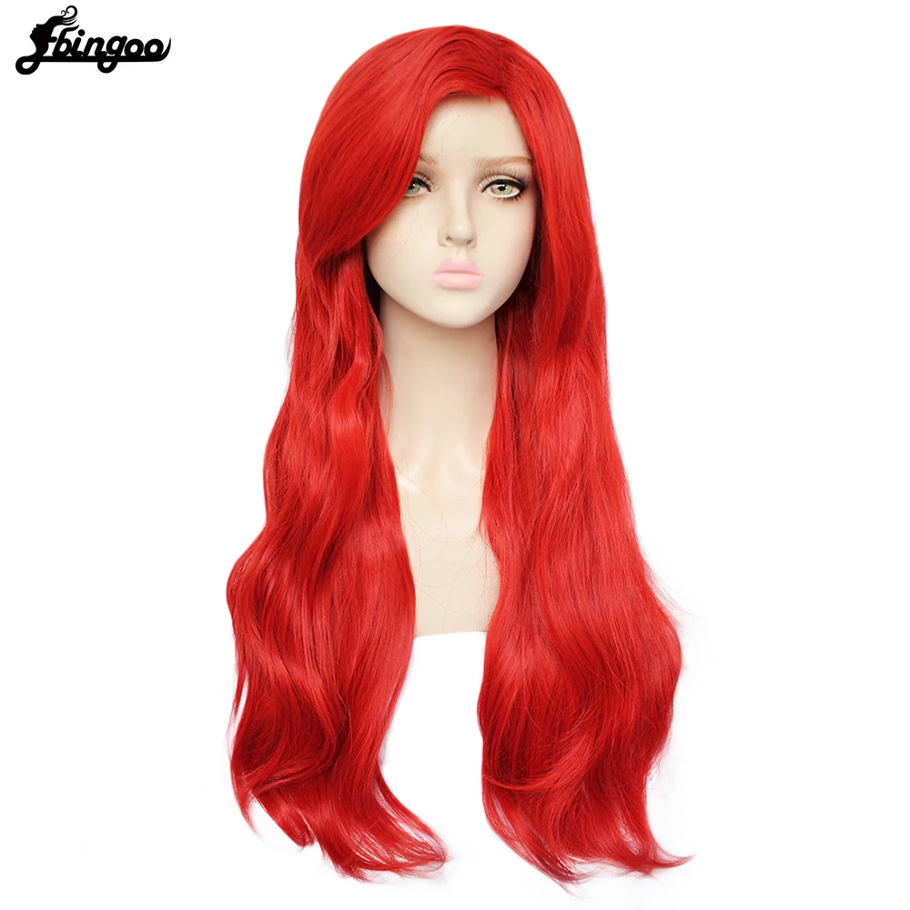 Ebingoo Русалочка Принцесса Ариэль косплей парик Красный Длинные волнистые синтетические парики для Хэллоуина костюм вечерние