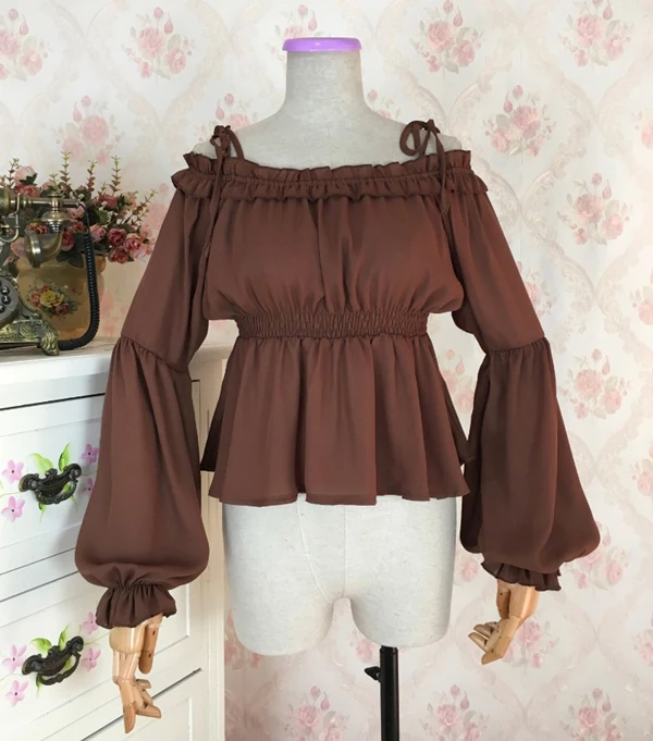 Милая шифоновая блузка с длинным рукавом-фонариком, женский топ с открытыми плечами на осень