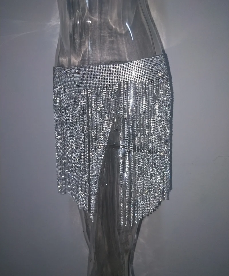 Bonnie Forest со сверкающими золотистыми алмазы мини юбка облегающее платье с блестками и с бахромой, юбка из кристаллов; Женские вечерние Клубные юбки, одежда для дня рождения
