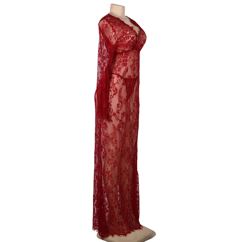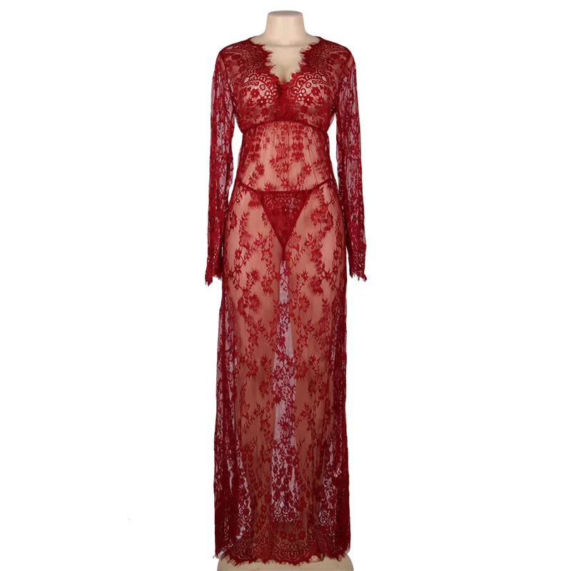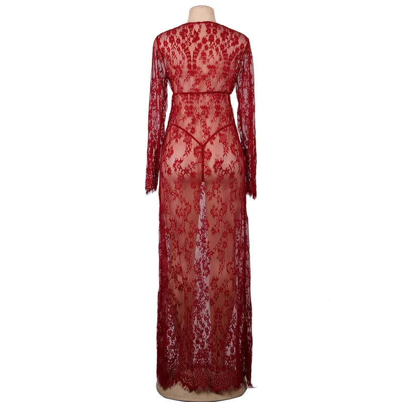 Ohyeahlover Макси черно-белая свадебная ночная рубашка Vestido с длинным рукавом кружевной халат ночная рубашка новая сексуальная ночная рубашка RL80497