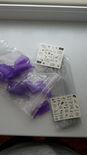 Прибыло в течение 20 дней. В полиэтиленовом пакете. Спасибо продавцу за подробную информацию о подарочных наклейках. Они очень хорошо сидят на пальцах даже в более широких/полных.