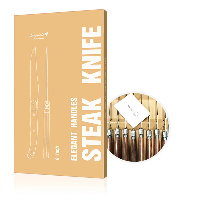 9 дюймов с деревянной ручкой стиль Laguiole нержавеющая сталь ножи для стейка набор ножей для ужина высококачественный ужин набор посуды