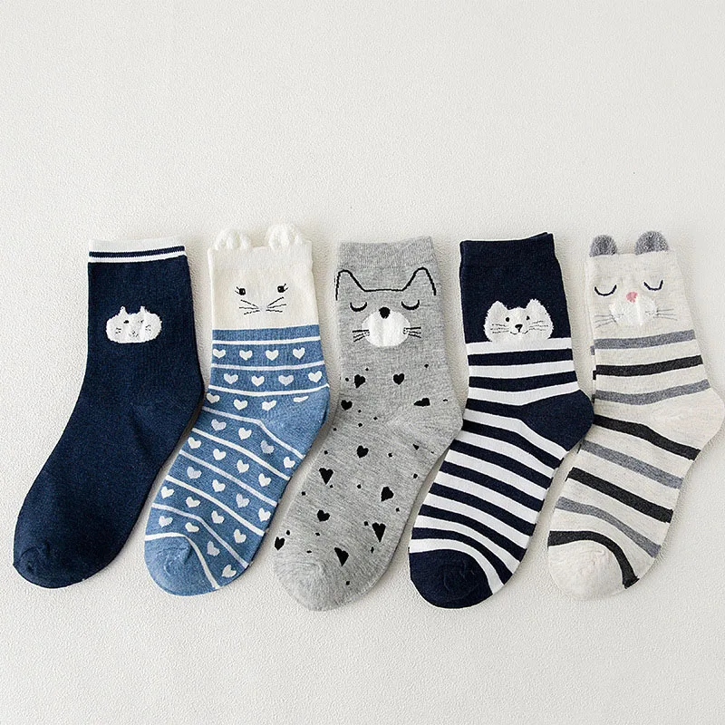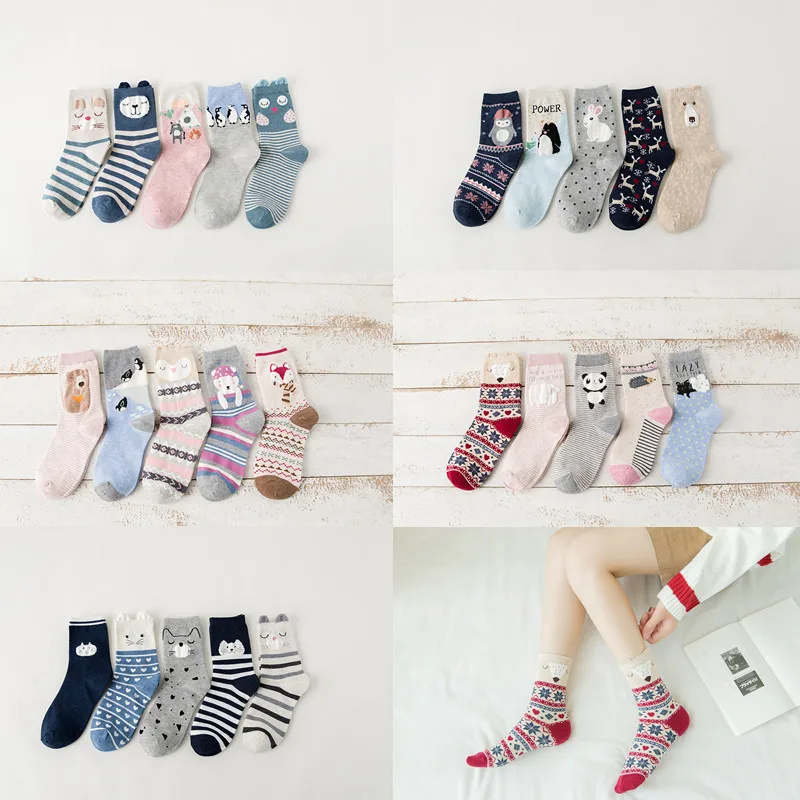 5 пар, женские короткие носки, креативный, милый, мультяшный, животные, женские носки, Осень-зима