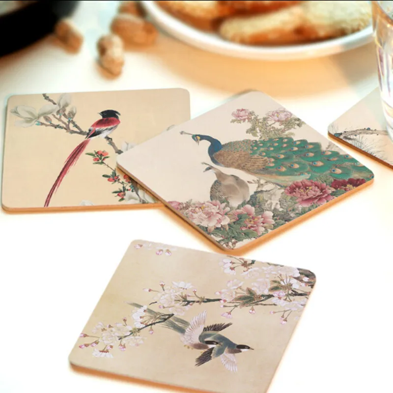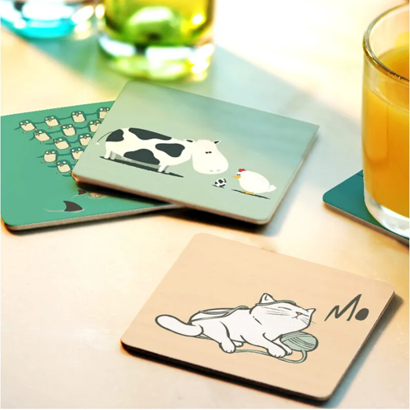 Качественный квадратный деревянный подстаканник с животным узором для напитков, черный подстаканник, коврик для чая, журнального столика, современные подставки для напитков, 1 шт.