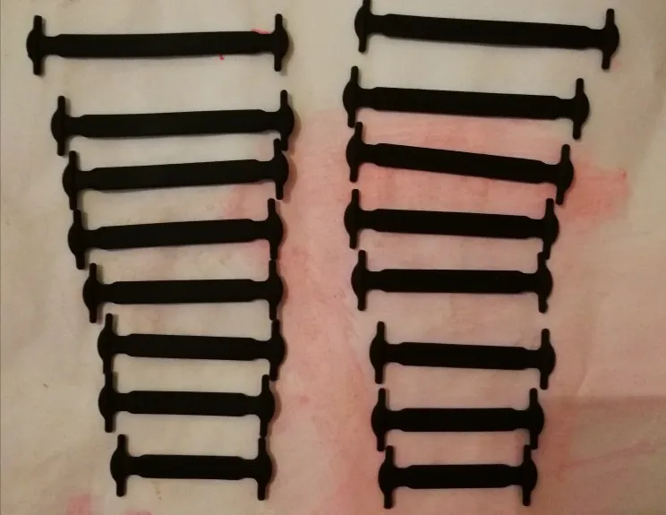 Зачётная тема. В отдельных видах кроссовок очень удобно. Главное подобрать верно длину (и уметь их вытаскивать назад [с отвёрткой или шилом] ), а то я несколько порвал. Для удобства на оборотной стороне резинки смотри цифры с размером (в обратной последовательности). Лицевая сторона рифленная.
