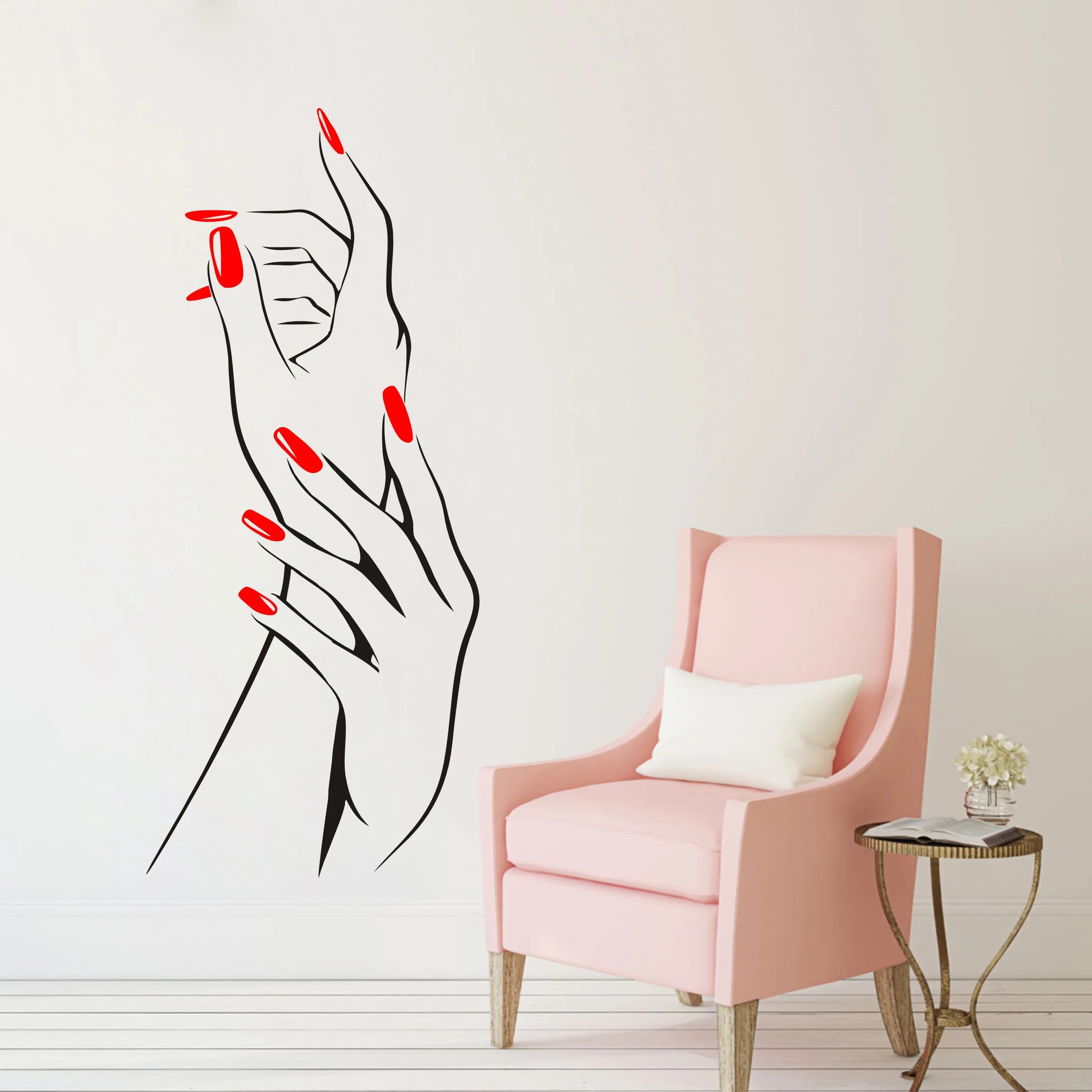 Красивые женские руки с элегантным лаком для ногтей Маникюр Наклейка на стену салоны красоты Магазин постер виниловые художественные фрески обои J127