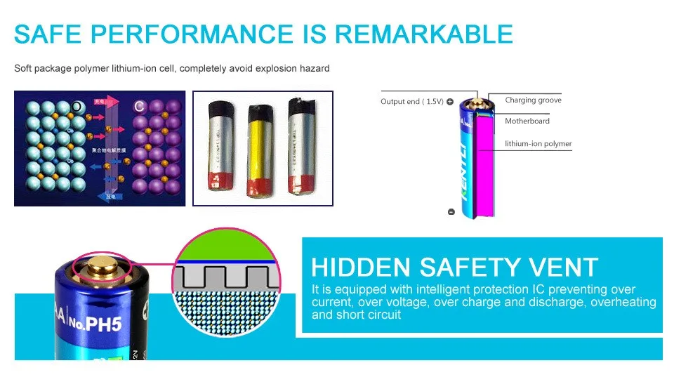 Аккумуляторная литий-ионная батарея KENTLI, 1,5 в, 3000 МВтч