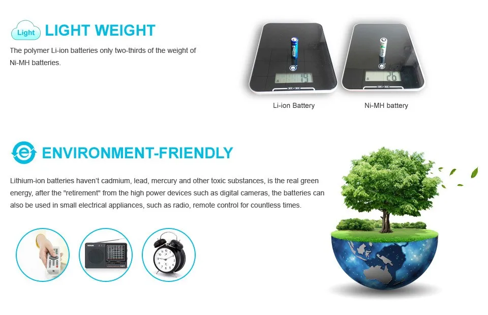 8 шт., перезаряжаемые литий-полимерные литий-ионные аккумуляторы AA...