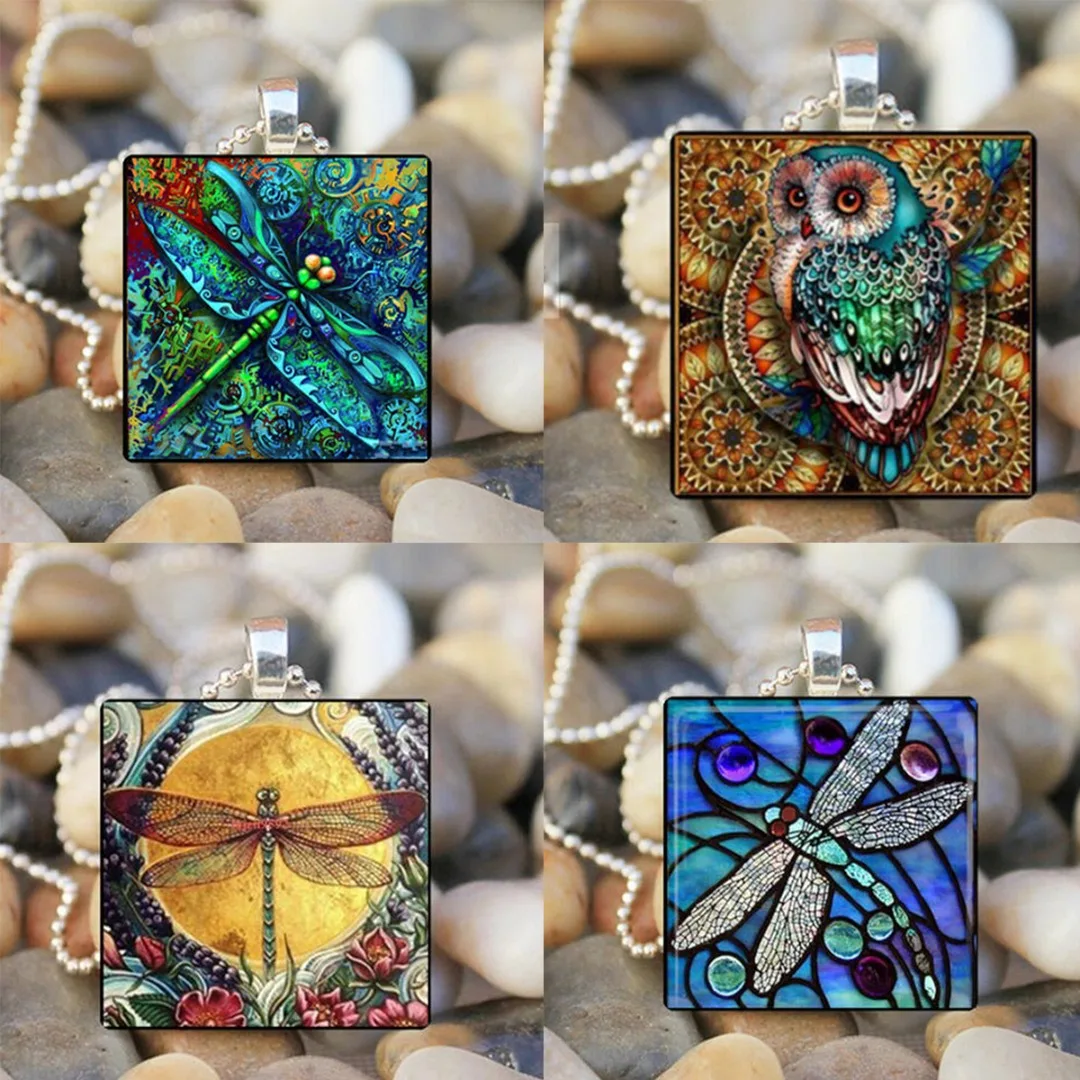Богемное ожерелье стрекоза винтажное Насекомое Подвески в виде животных Совы этнический стиль звено цепи ожерелье расписанное стекло квадратное ожерелье