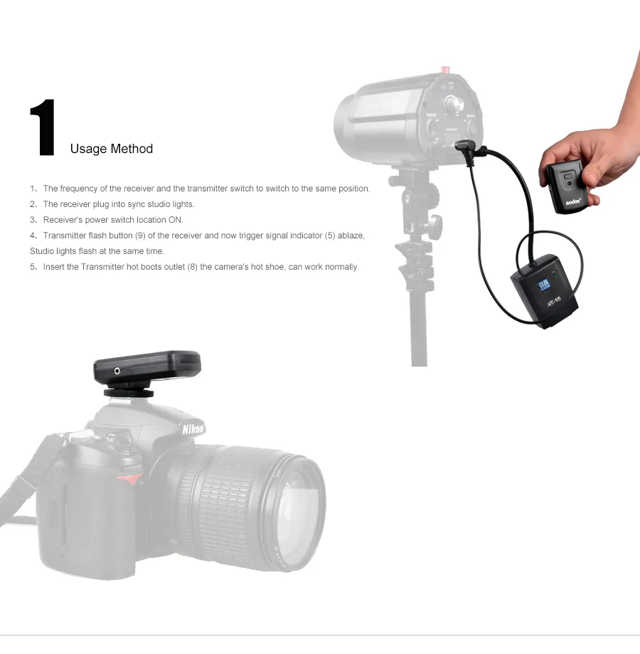 16-канальный передатчик и приемник Godox AT-16, Беспроводной студийный триггер для вспышки для Canon, Nikon, Pentax, Olympus, Samsung