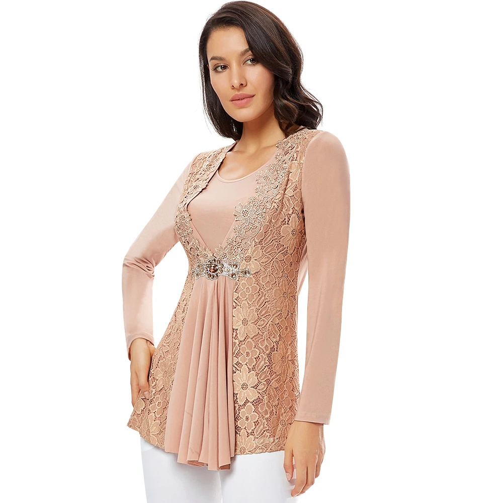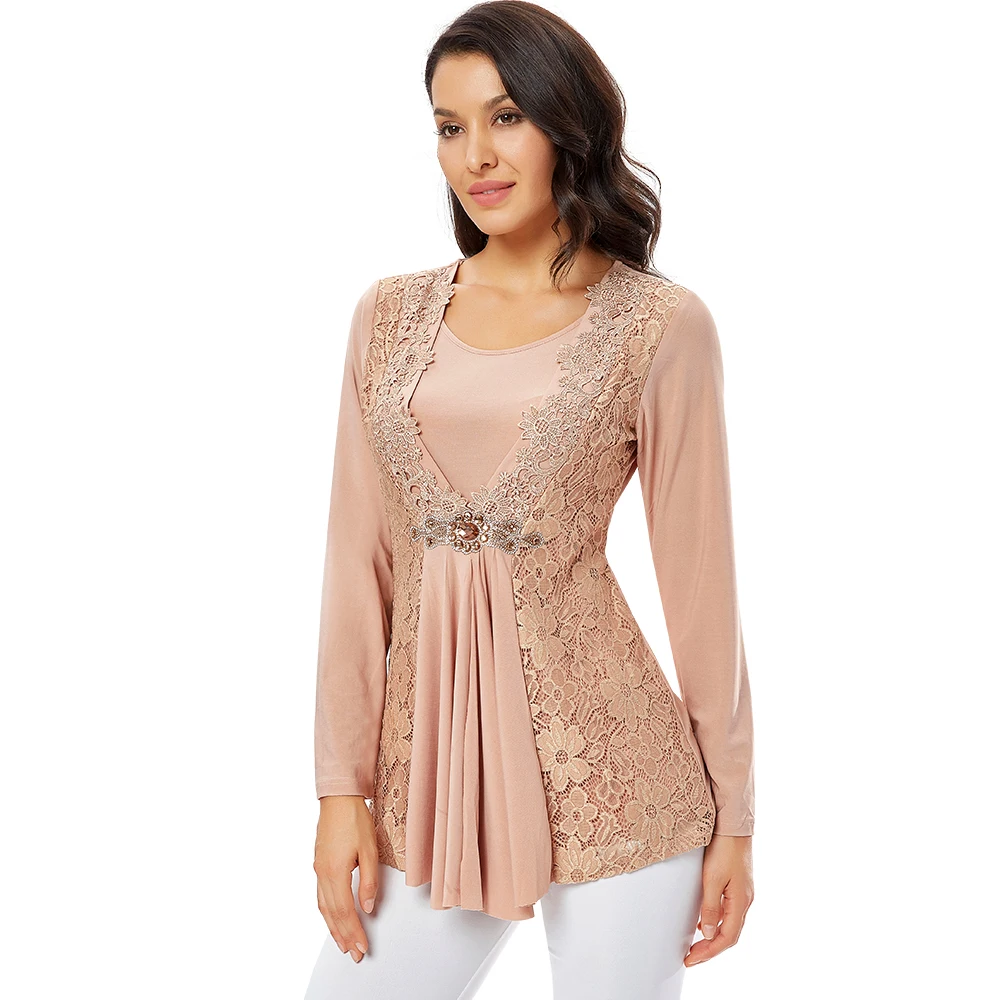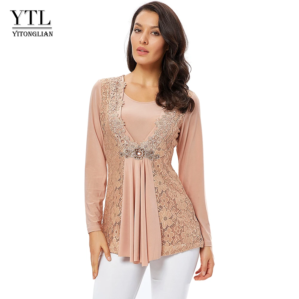 YTL Plus Size Womens Blouse Vintage Spring Autumn Floral Crochet Lace Top Cotton Long Sleeve Tunic Blouse Shirt 6XL 7XL 8XL H025