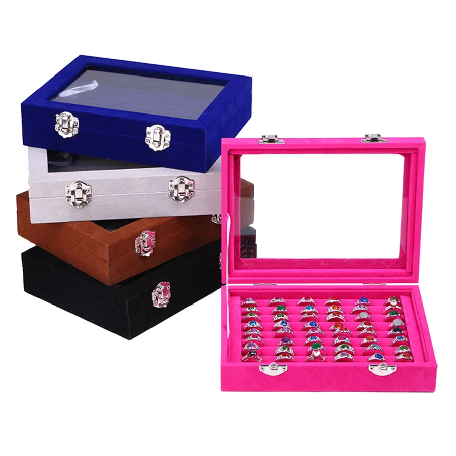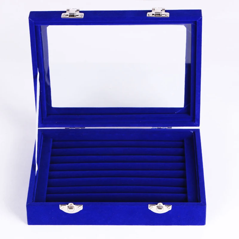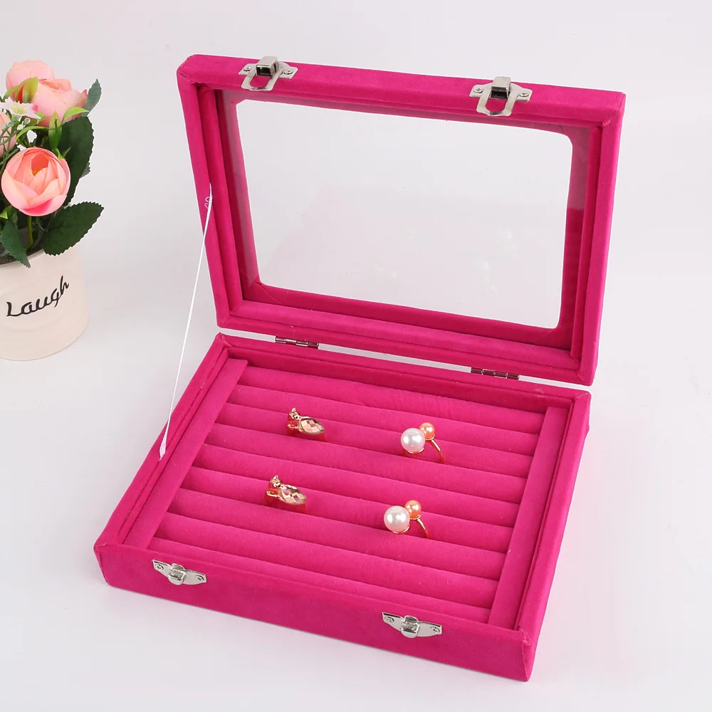 Бархатный Чехол для переноски с 8 кабинами и стеклянной крышкой, шкатулка для демонстрации колец и ювелирных изделий, держатель лотка, шкатулка для хранения, Органайзер