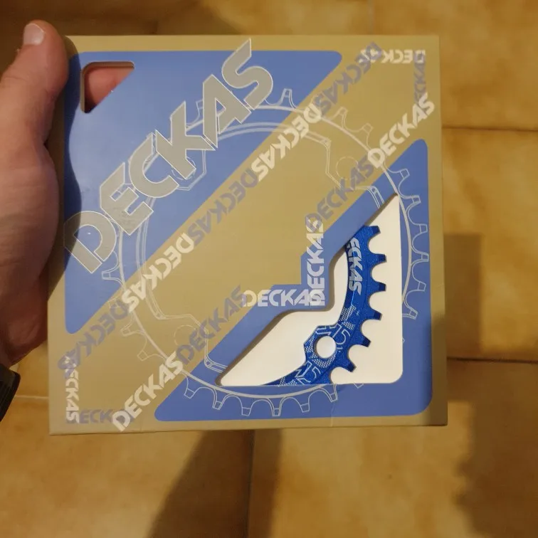 Nice chainring: Clean machining, nice finish, color as expected. 104BCD 38T round is 70g on my scale.