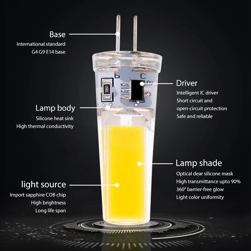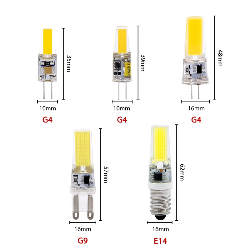 Приглушаемая светодиодная лампочка COB G4 G9 E14, сменные галогенные лампы для люстры, 3 Вт, 6 Вт, 12 В, 220 В переменного тока