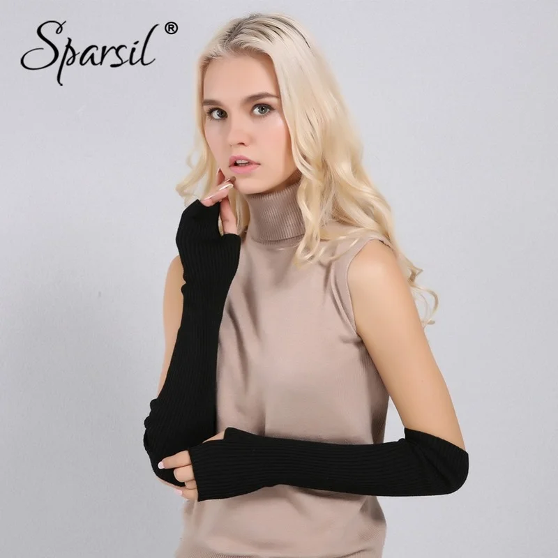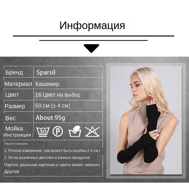 Sparsil , женские зимние гетры , кашемировые , без пальцев, длинные перчатки , одноцветные, теплые, варежки , налокотники, вязаные рукава , 50 см , перчатки