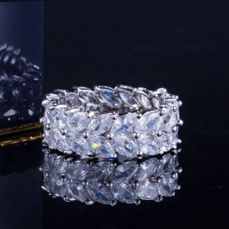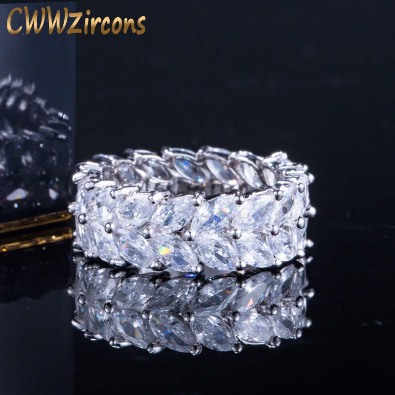 CWWZircons блестящий белый золотой цвет огранка маркиза оливковая ветка Кубический Цирконий обручальные кольца кольцо для женщин ювелирные изделия R033
