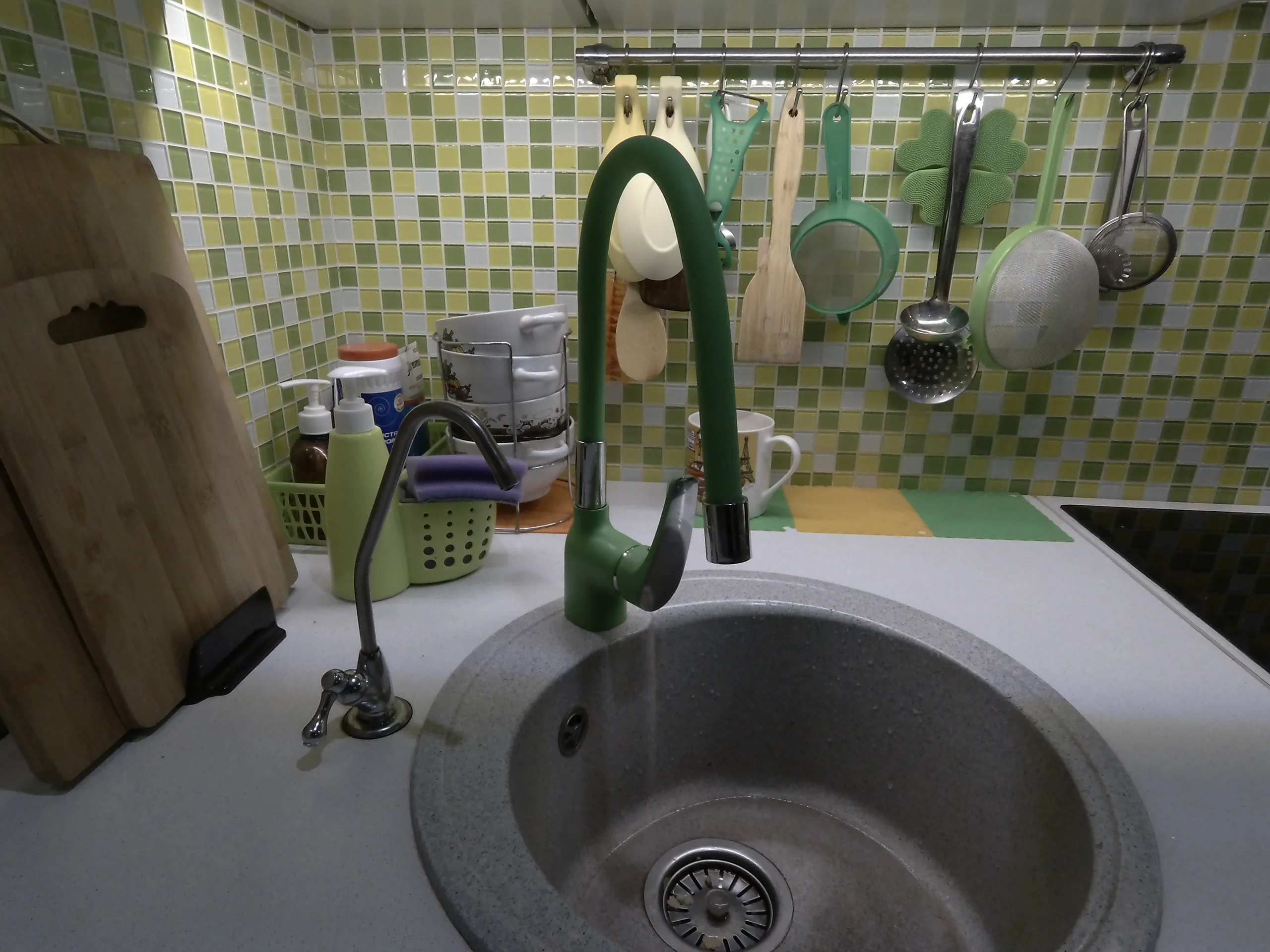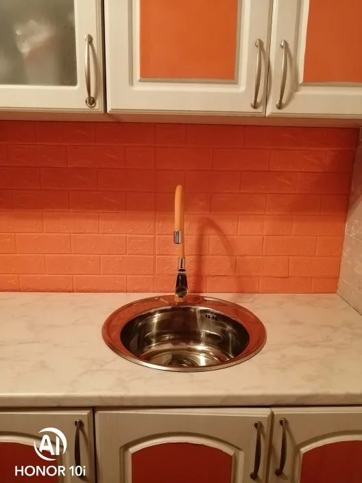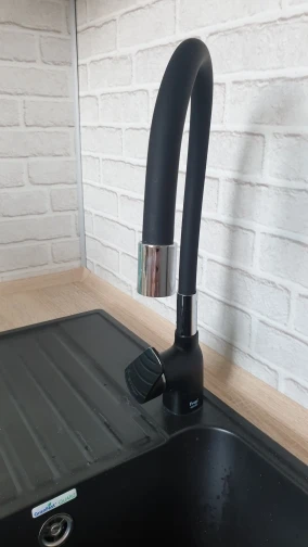 Хороший кран, гибкий, но твердый, левое расположение ручки в самый раз! В комплекте шланги подводки на 35 см - коротковатые, пришлось покупать новые. В комплекте отсутствует гофра для канализационной трубы, тоже необходимо купить, если собираетесь устанавливать кран с нуля.