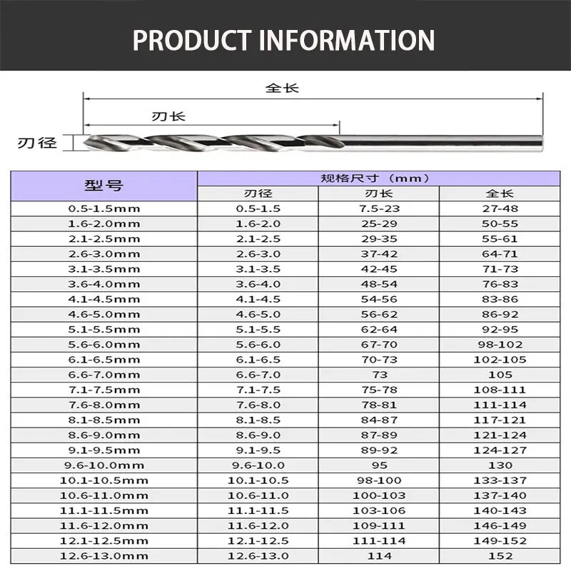 Цвет сверления HSS черный и белый. Все цвета вставки доставляются случайным образом. Пожалуйста, сообщите нам заранее, если есть какие-либо особые требования.