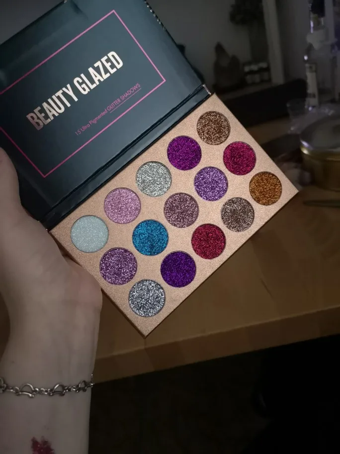 Очень красивая палитра с хорошо пигментированными блестками. Для лучшего результата его следует наносить кончиками пальцев, а не кистью. Также я рекомендую использовать Блестящий праймер в качестве основы для максимального соответствия и более сильного эффекта. За эту цену вы получаете 15 теней, каждая по 1 г/0,035 унций.