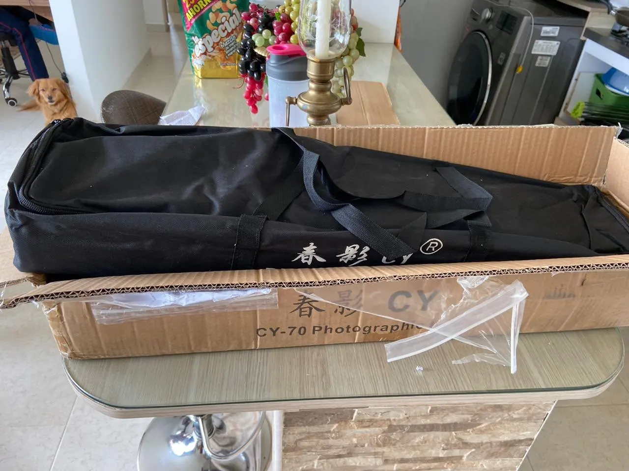 Это огонь!!!! Упаковано идеально! Светит очень ярко!!!! Собирается легко, не хлюпкое. Правда с прикреплением фона повозиться нужно, но это дело техники. На каждую лампу (их 2) отдельное подключение, но и одна светит как в хирургии. Свет регулируется. В комплекте штатив с уровнем, ножки регулируются по высоте от30 до 90см.не знаю выдержит ли фотоаппарат, но для телефона держатель есть. Со всеми купонами и скидками вышел за 4000р. Заказ из России. РЕКОМЕНДУЮ именно этого продавца. Быстро, надежно, качественно!!!