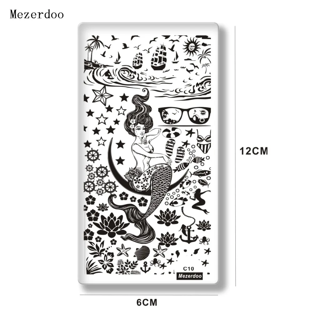 Маникюрный штамп Mezerdoo с изображением русалки, дизайн ногтей, штамп, шаблон, перенос изображений, морские образцы жизни, Гель-лак для ногтей, штамп C10