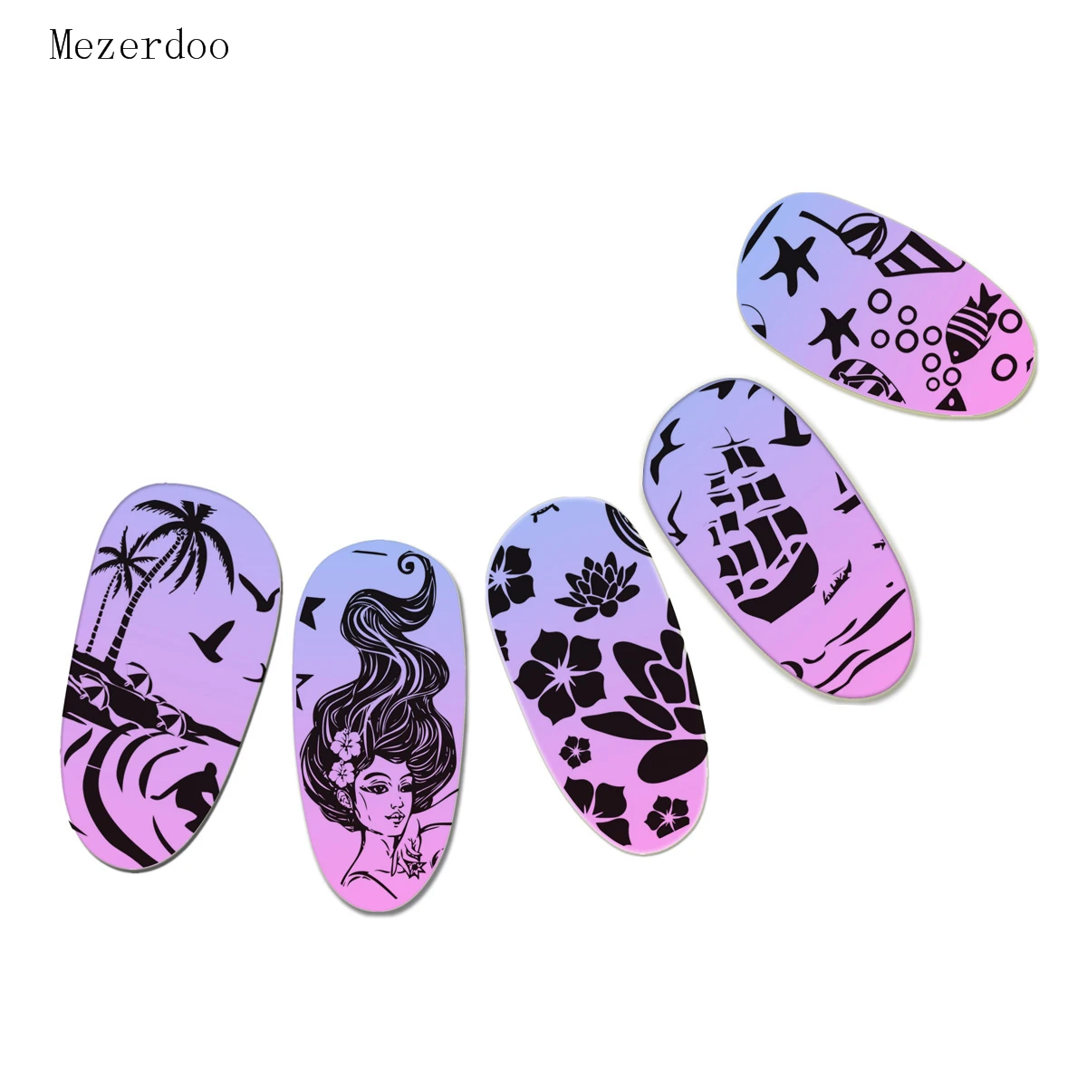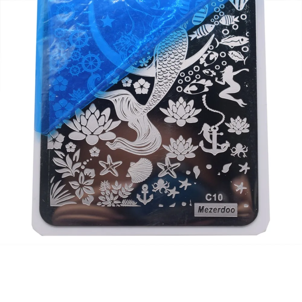 Mezerdoo Русалка Дизайн ногтей штамп шаблон для дизайна ногтей Передача изображений Морская жизнь шаблоны гель лак для ногтей для штамп C10