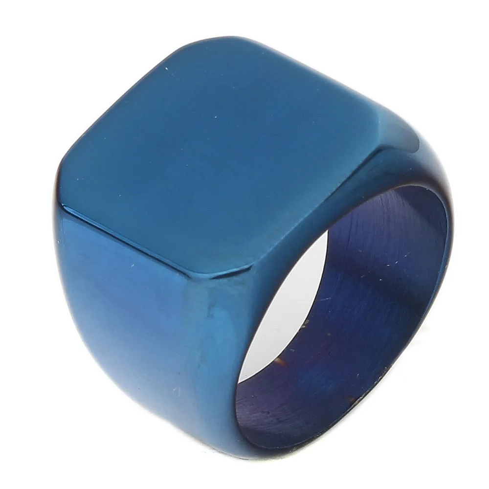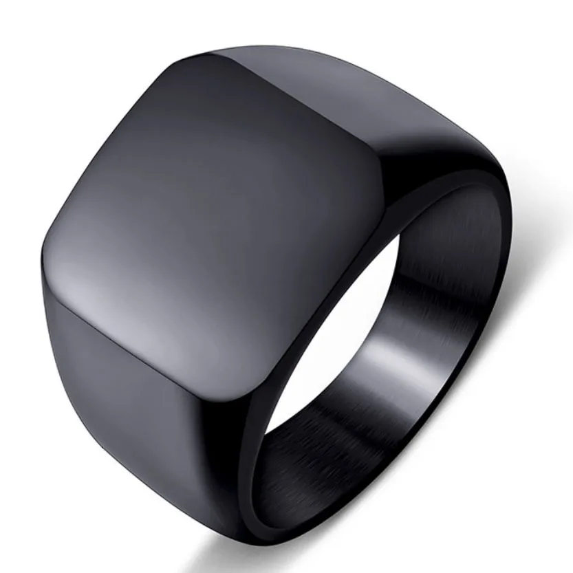 Бесплатная гравировка, новые серебряныеЗолотыечерныесиние квадратные большие широкие кольца, индивидуальные модные мужские кольца на палец, ювелирные изделия из титановой стали