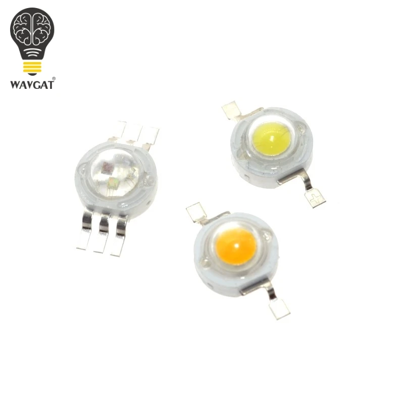 Светодиодные лампы высокой мощности WAVGAT, 1 Вт, белый, теплый белый, красный, геррн, синий, RGB, 3,2 мА, 3,4-в,-лм, 30 мил