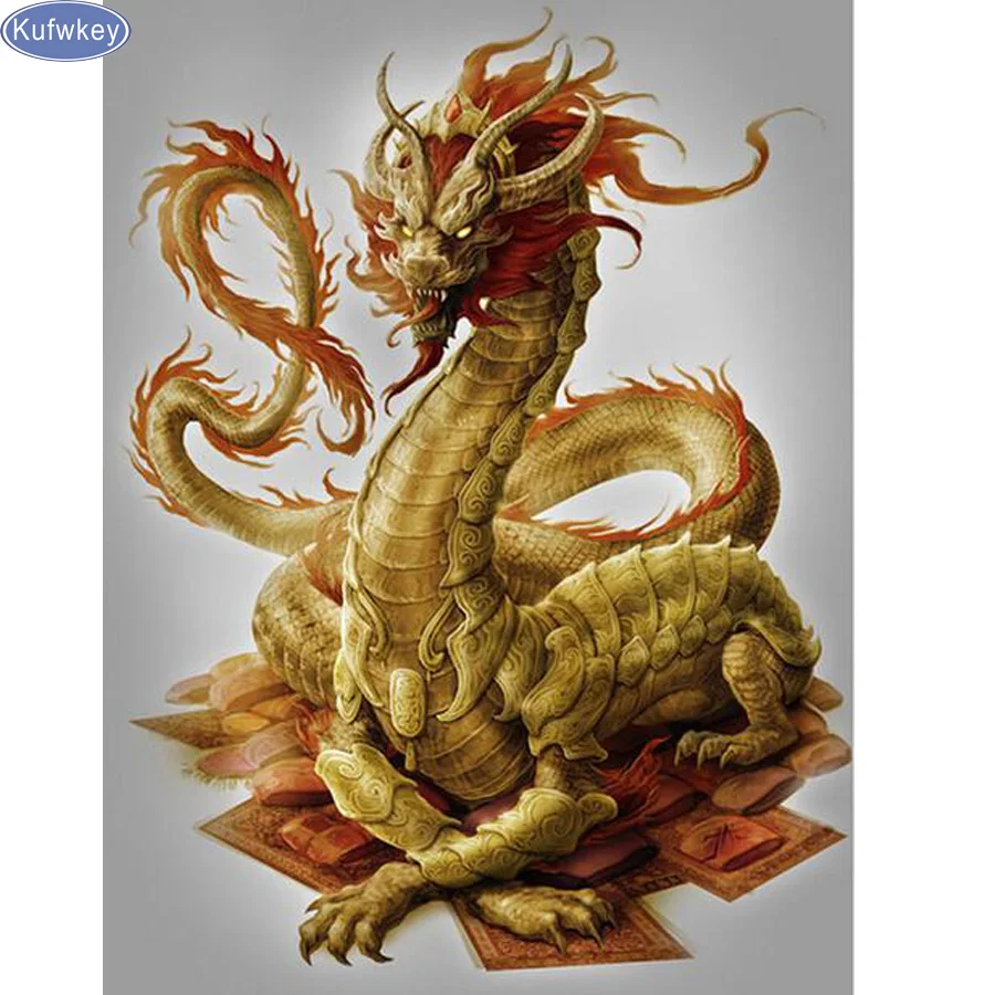 Алмазная живопись 5D "сделай сам", вышивка крестиком, искусственный Дракон из Китая, украшение для дома, подарок
