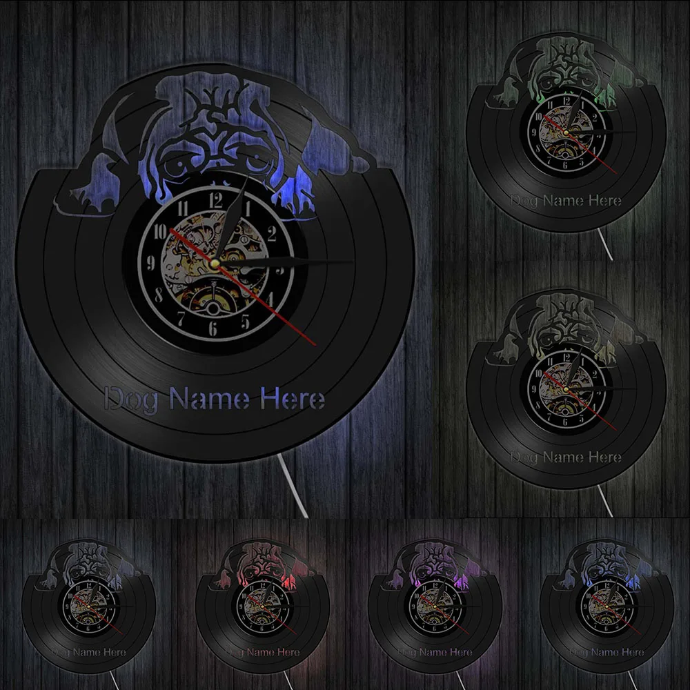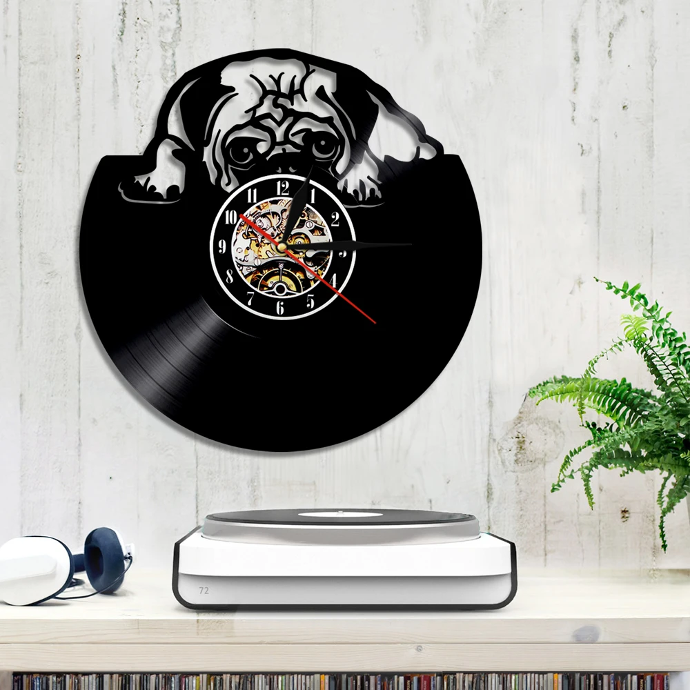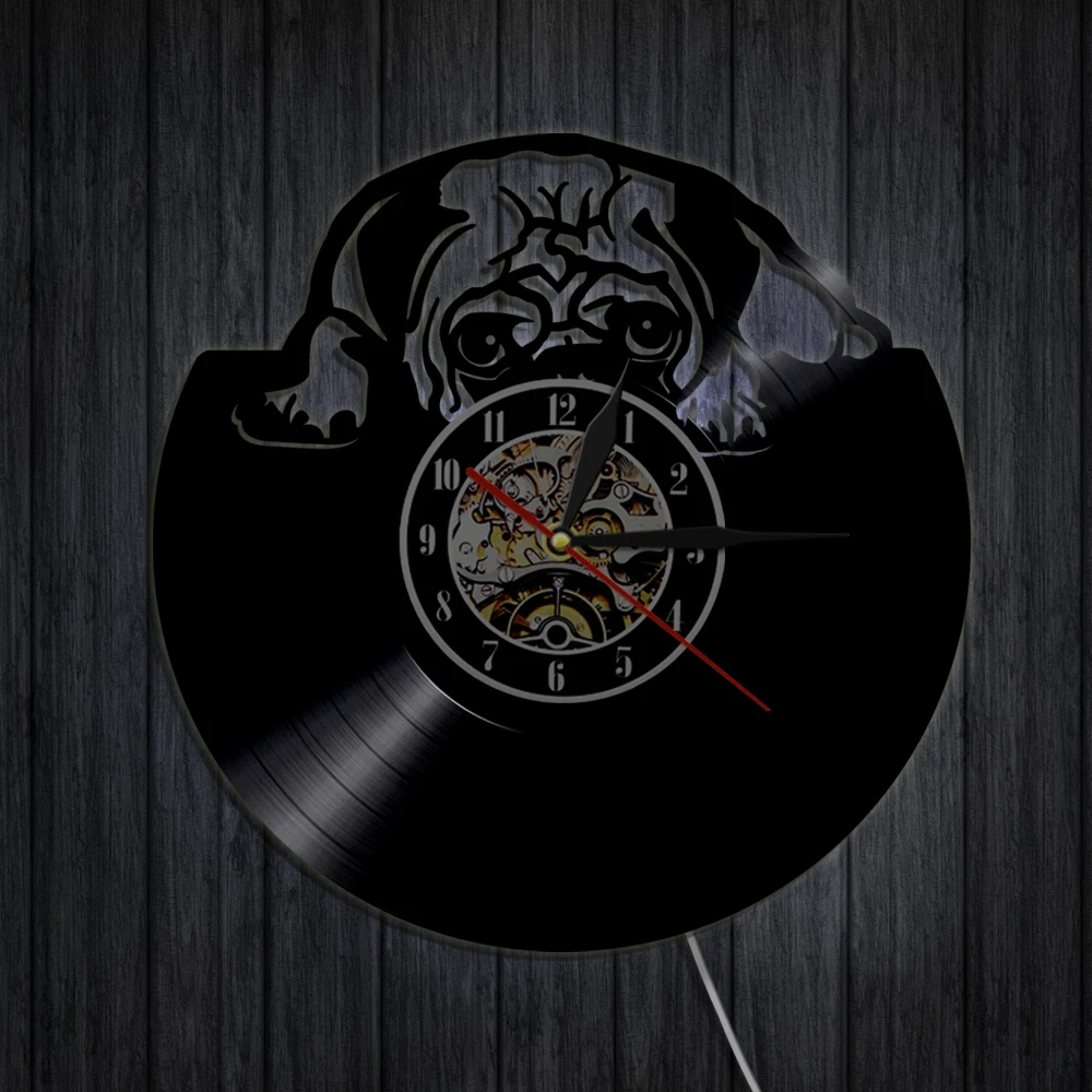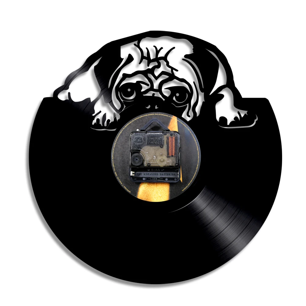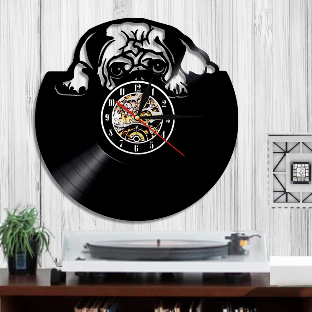 Часы настенные кварцевые с виниловой пластиной, тихие украшения для гостиной с изображением английского бульдога, щенка, собаки, любимого домашнего декора, в стиле ретро