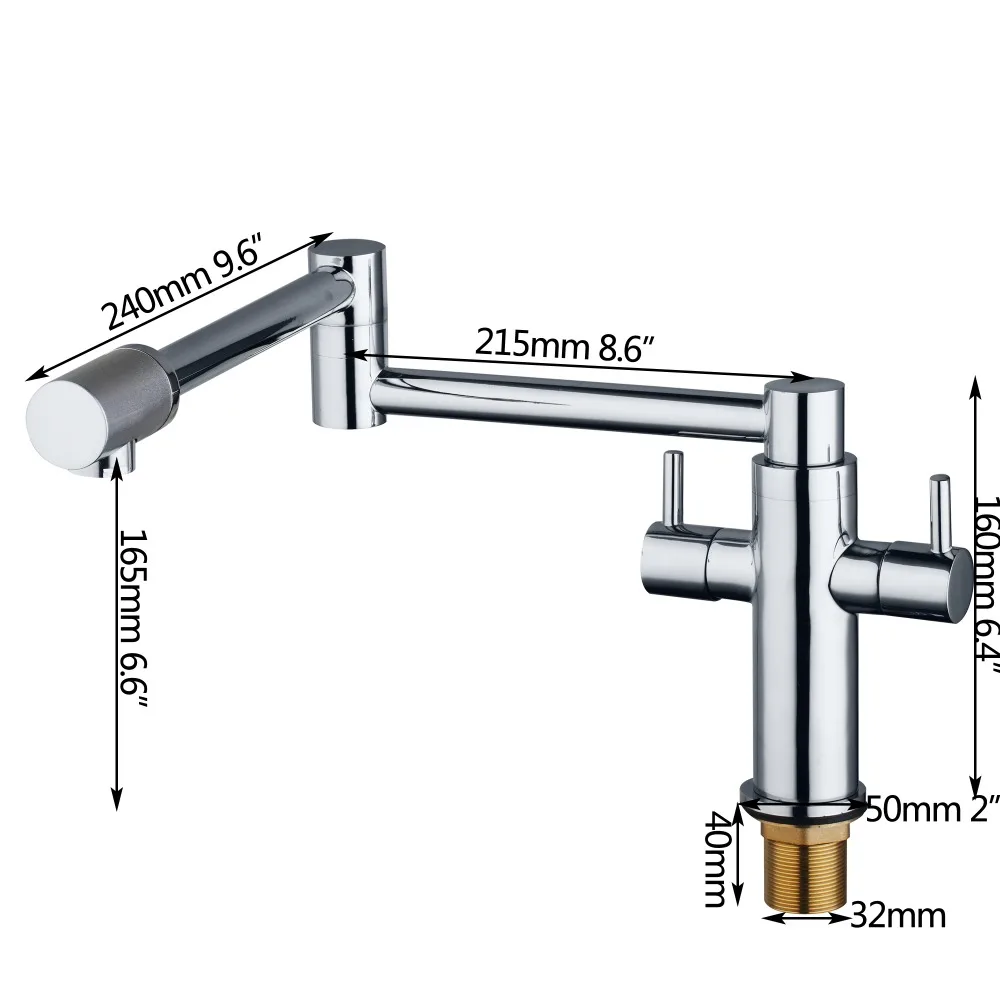 YANKSMART двойные ручки наполнитель для кастрюль хромированный Поворотный кухонный смеситель для раковины сосуд удлиненный носик кран для холодной и горячей воды