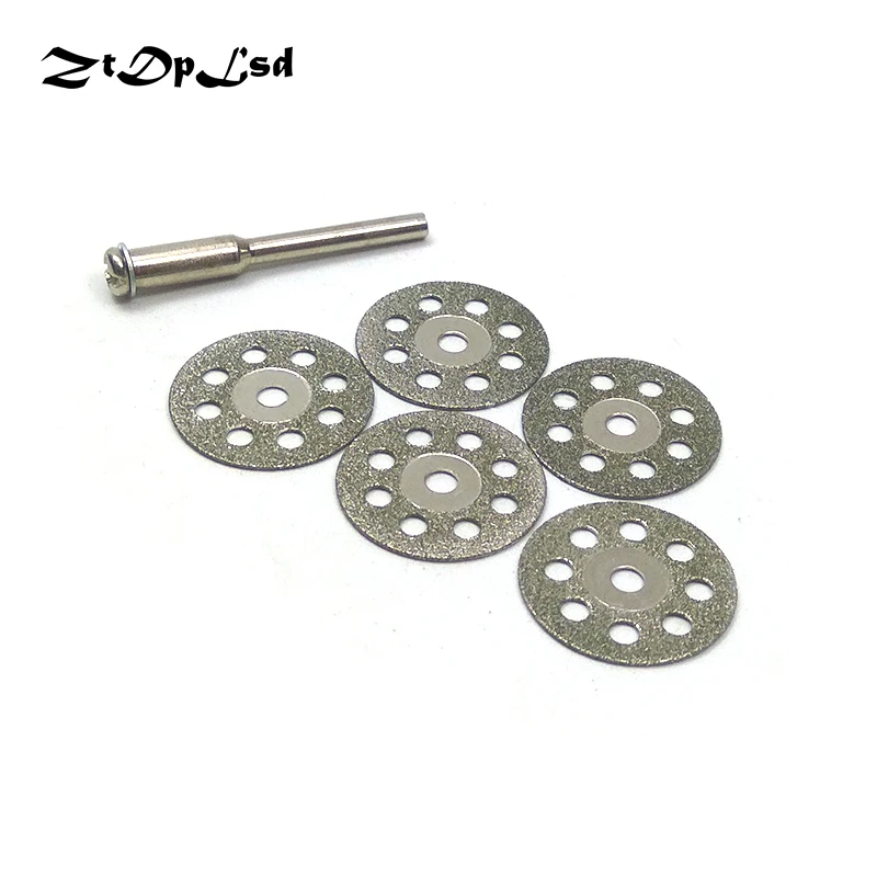 Алмазные режущие диски ZtDpLsd, комплект из 5 предметов, 20 мм, отрезное лезвие + 1 хвостовик 3 мм для роторного инструмента Dremel, абразивные диски, аксессуары для dremel