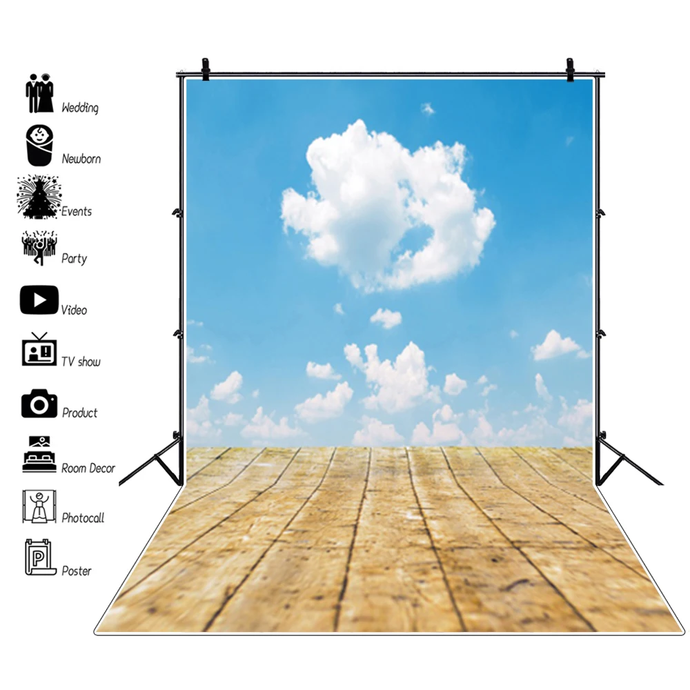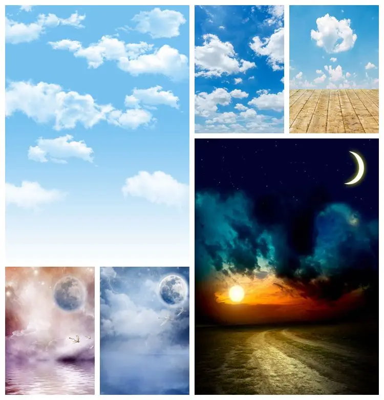 Фон для фотосъемки новорожденных с изображением белого облака Луны ночи детского дня рождения деревянного пола