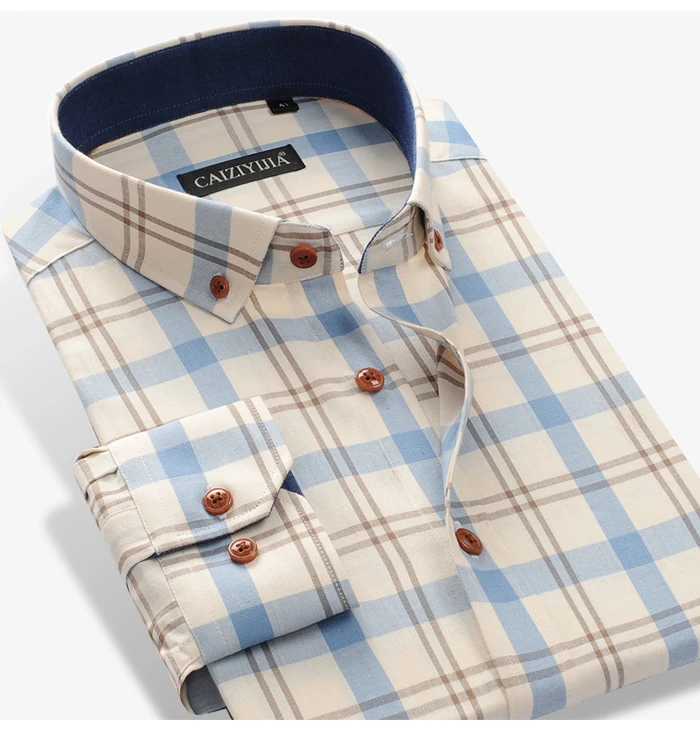 Мужская клетчатая рубашка из 100% хлопка с длинным рукавом в контрастную клетку, повседневные рубашки Без карманного дизайна и пуговицами