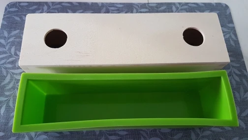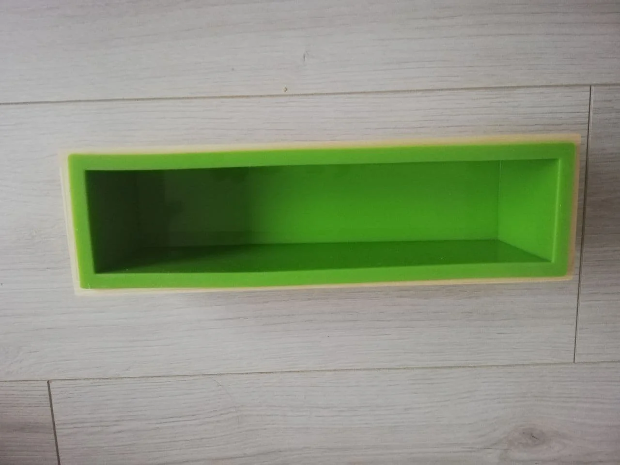 Очень понравилась форма. Я брала меньшего объема, примерно на 900 гр. Хорошее качество: деревянная коробка ровная, гладкая, аккуратная и также хорошая силиконовая. Запаха никакого нет. Аккуратно упаковано. Всё соответствует описанию. Продавца рекомендую.