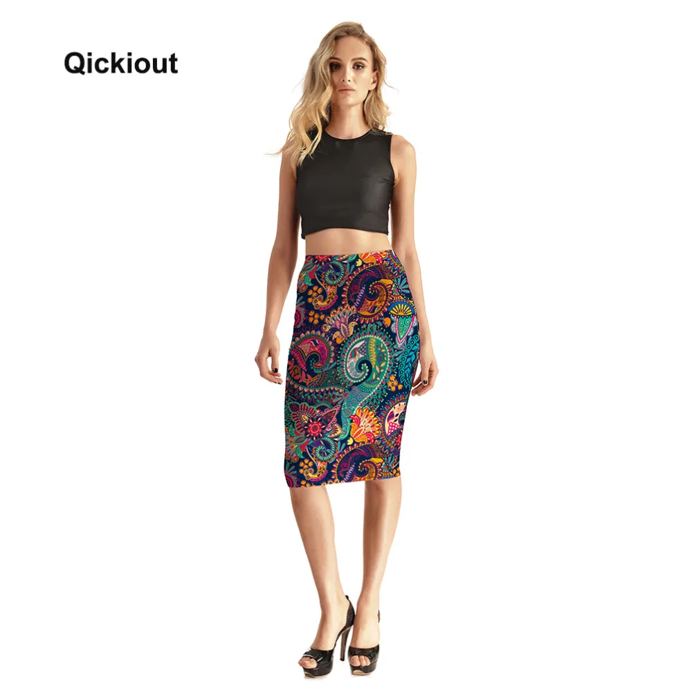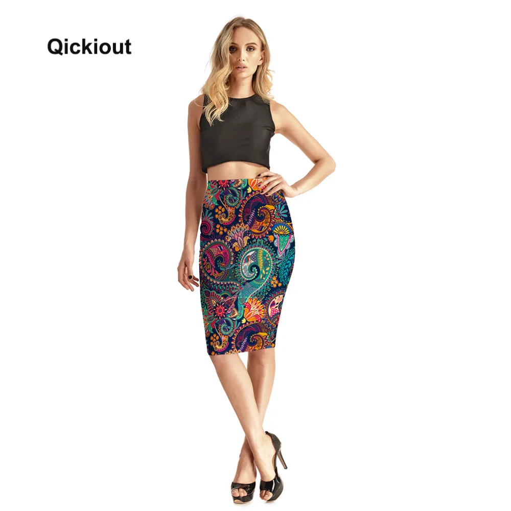 Qickitout юбки для фитнеса Новинка 2017 Модные женские сексуальные ацтекские круглые Омбре юбки с высокой талией облегающая юбка на бедрах Saia Midi размера плюс