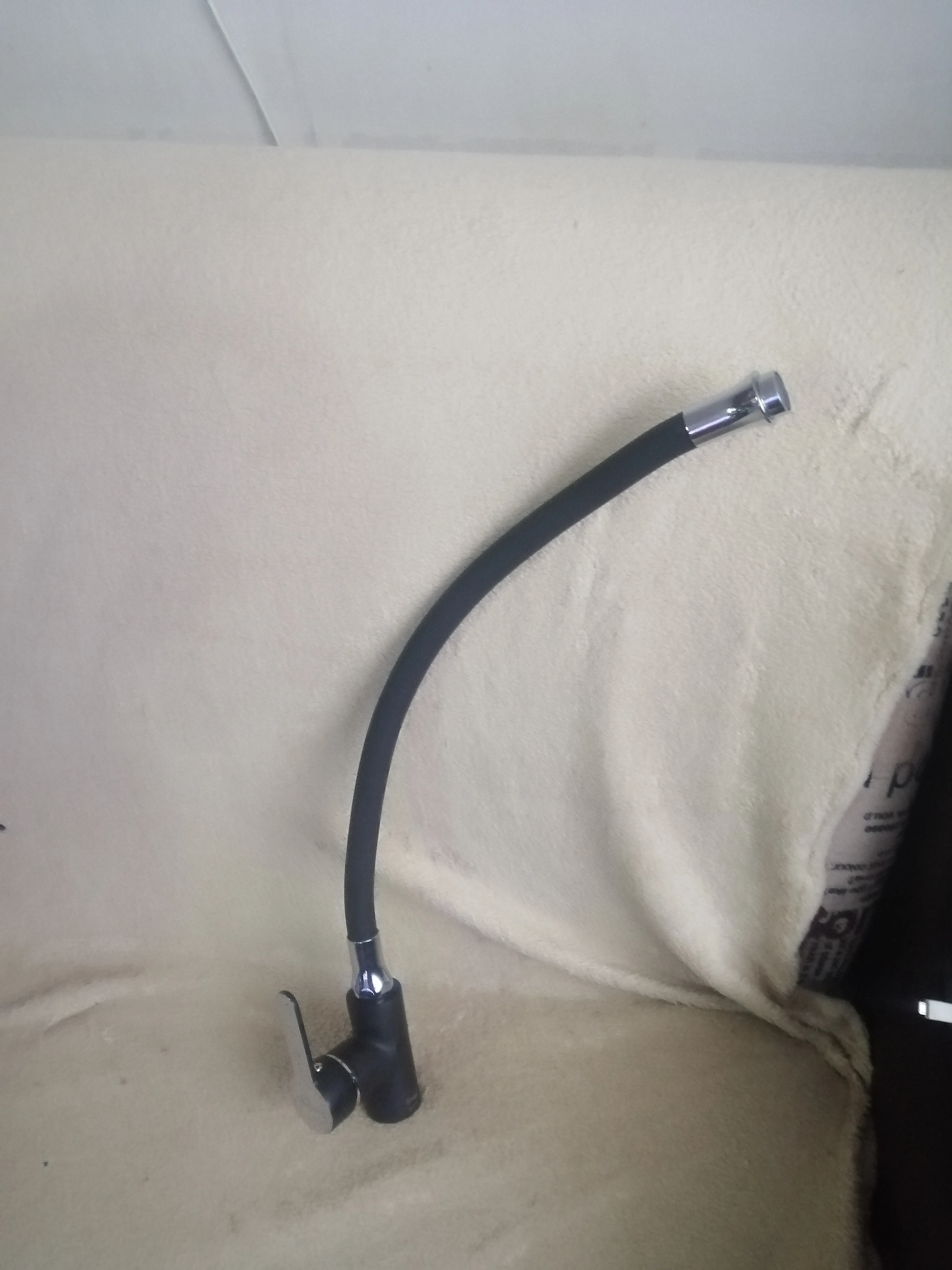 очень долго ждал,но в конце все пришло,точно как на фото.кран гнется как тебе удобно,еще не установил,но визуально выглядит классно