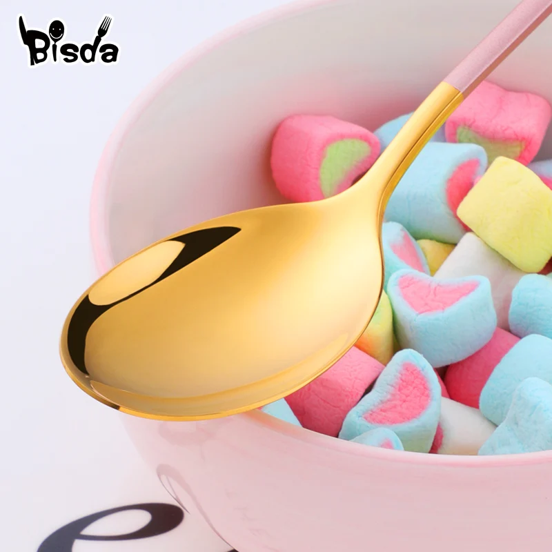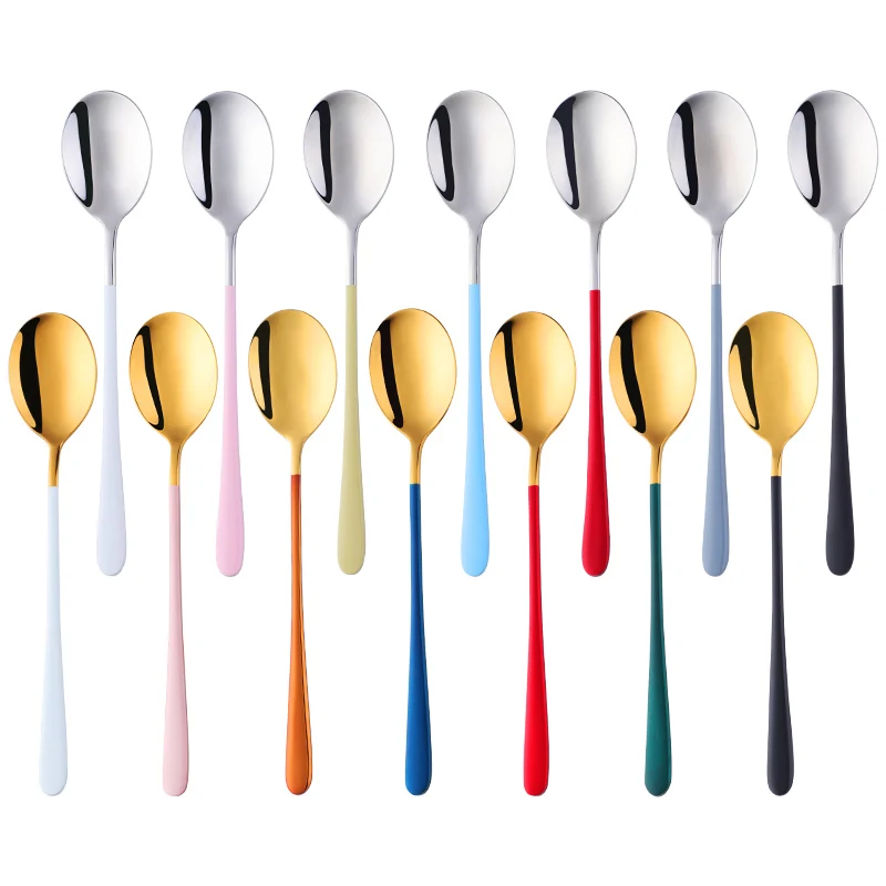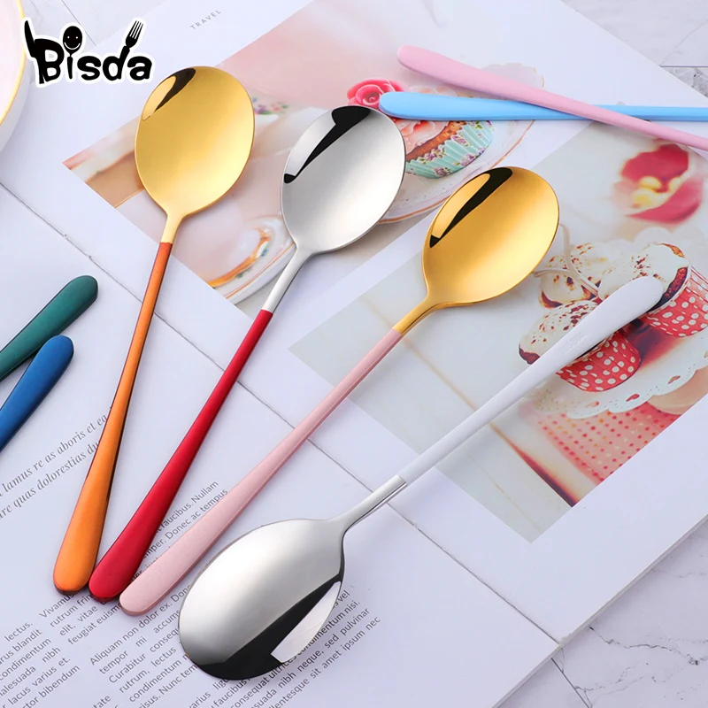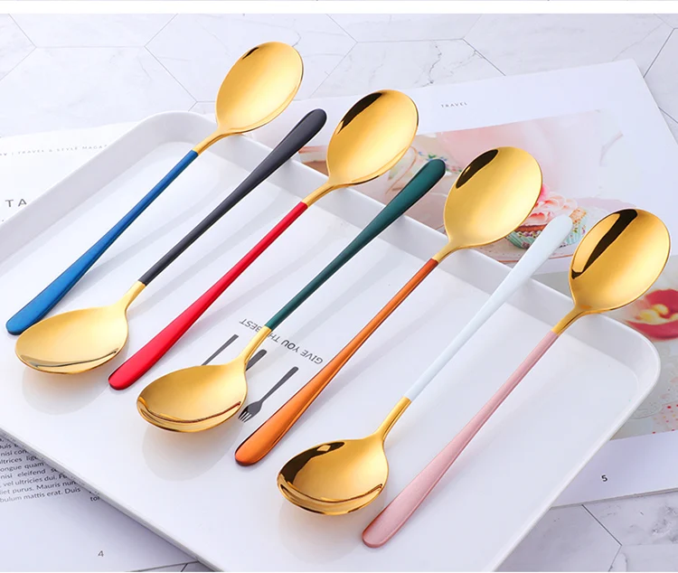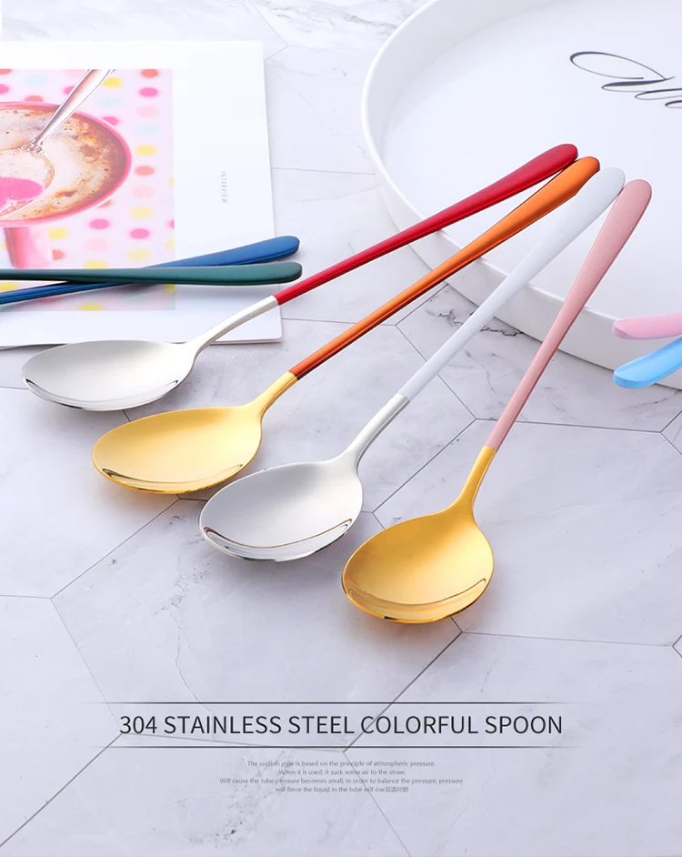 1 шт. Корейская ложка из нержавеющей стали, суповая ложка с длинной ручкой, золотые десертные ложки, круглая обеденная ложка, набор посуды
