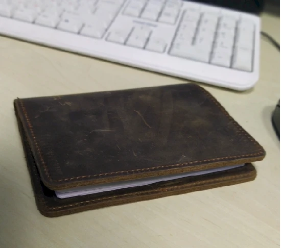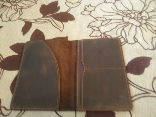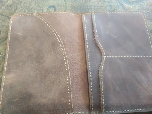 Отличная, олдскульная обложка из толстой кожи. Изнутри не пластиковые со временем рвущиеся вставки, а та же кожа. Видел на фото у некоторых неровные швы. Почему-то на коричневых с этим получше. Короче я рекомендую брать. Шло долго, ждите придет.