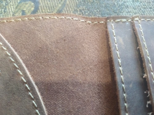 Качество обложки хорошее, ровная прострочка, снаружи кожа с царапинами и потёртостями, но так и должно быть типа винтаж, но похоже что внутренняя сторона проклеена тканью, если приглядеться есть какая-то текстура, отклеится со временем или нет, покажет время. Но сделано всё очень хорошо.