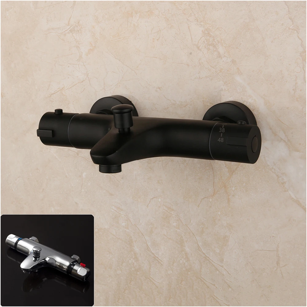 OUBONI Термостатический душ настенный 2 ручки кран Носик наполнитель переключающий черный и хром Ванна клапан кран смеситель кран