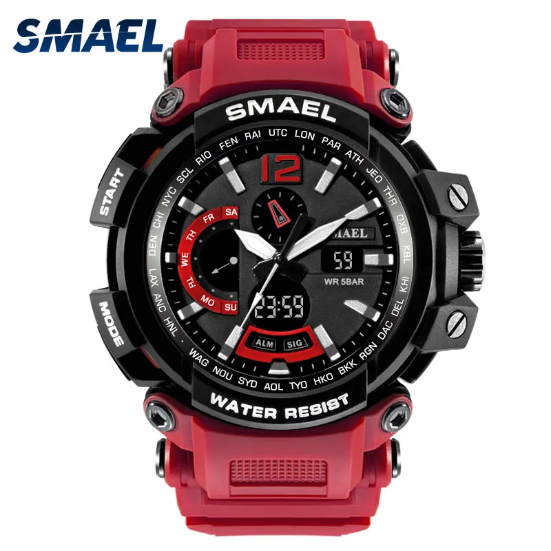 Часы SMAEL с двойным дисплеем, мужские, водонепроницаемые, светодио...