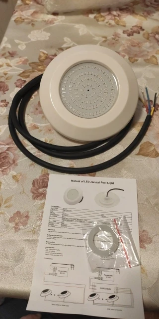Ждал очень долго 2 светильника - более 3 месяцев. На месяц с хвостом задержались на таможне. Но потом, доставлены были курьером DPD до двери. Светильниками очень доволен, прямо то, что и ожидал! Качество хорошее, в комплекте инструкция и силиконовая прокладка. Резьба дюймовая 1/2", как и ожидал. Для монтажа в полипропиленовый бассейн, в стенки впаял обычные полипропиленовые переходники на металл. Общее количество светодиодов - около 110.