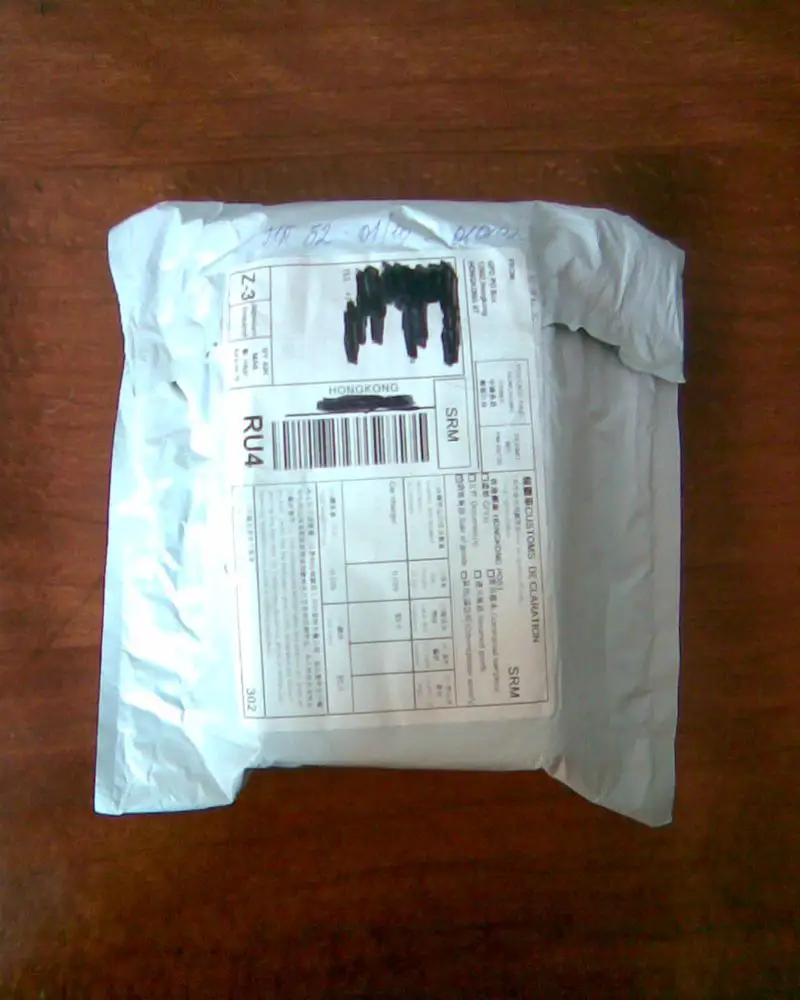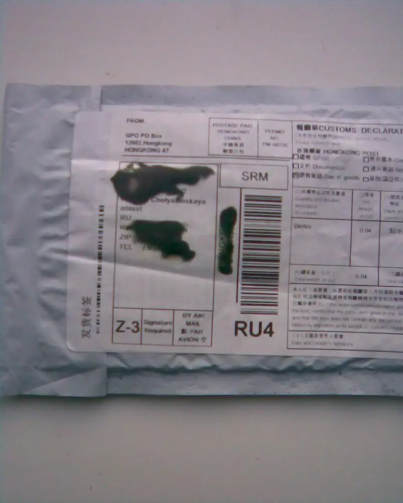 Жёлтый пупырчатый пакет приехал за три недели. Всё работает , кол-во верное.Рекомендую.