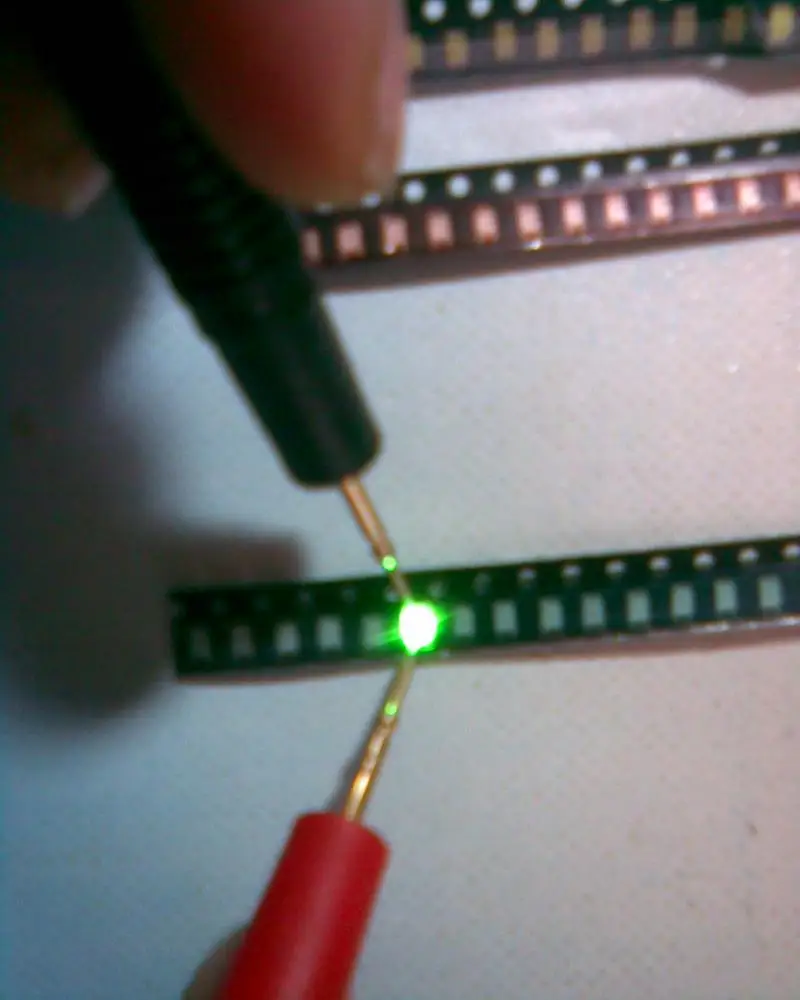 Брал 5730 два комплекта. Синий и зелёный - большой плюс. Жёлтый и красный - маленький плюс. Жёлтый по цвету ближе к оранжевому. Зелёный с красивым изумрудным оттенком. Белый - совсем другая форма контактных площадок, с центральным прямоугольником, смещённым к плюсовому контакту. Быстрая отправка.