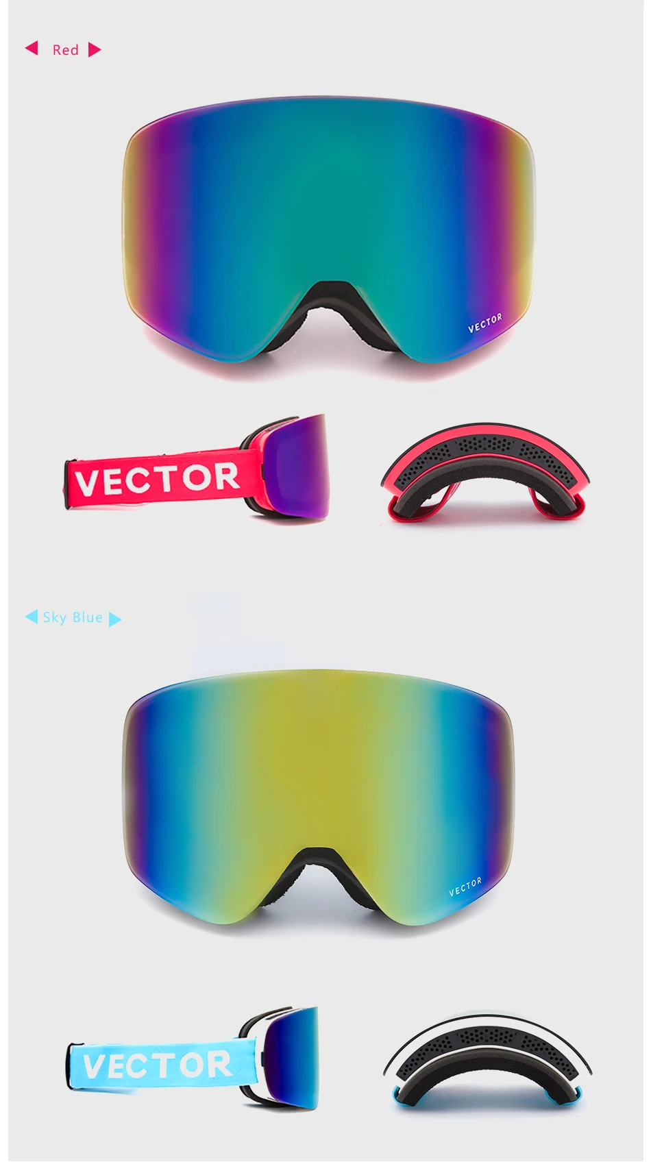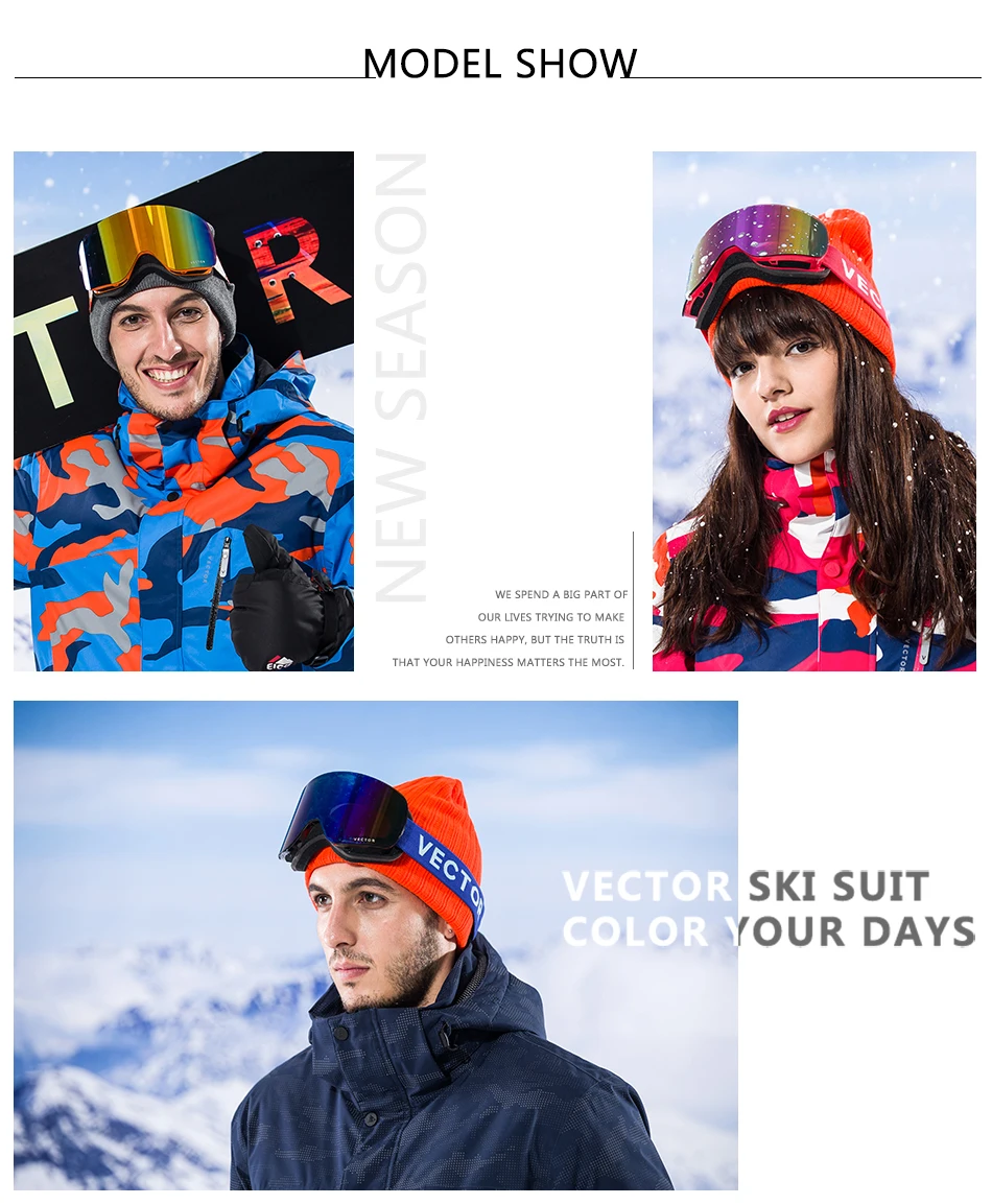 Из-за отраженного снегом солнечного света сильный плюс холодный ветер стимулирует глаза. Мы предлагаем вам выбрать профессиональные защитные лыжные очки, а бренд «VECTOR»-ваш лучший выбор. Лыжные очки VECTOR-это более подходящее лицо и защищают от ветра. Линзы изготовлены из импортных противотуманных линз, а покрытия закалены и обработаны устойчивой к царапинам поверхностью, ударам и истиранию. 100% УФ, очень хорошая защита глаз